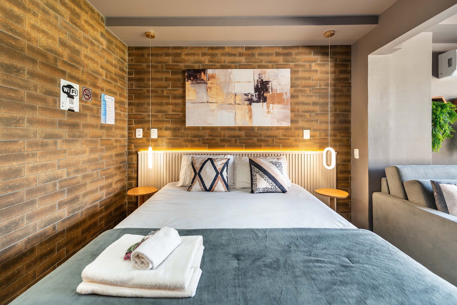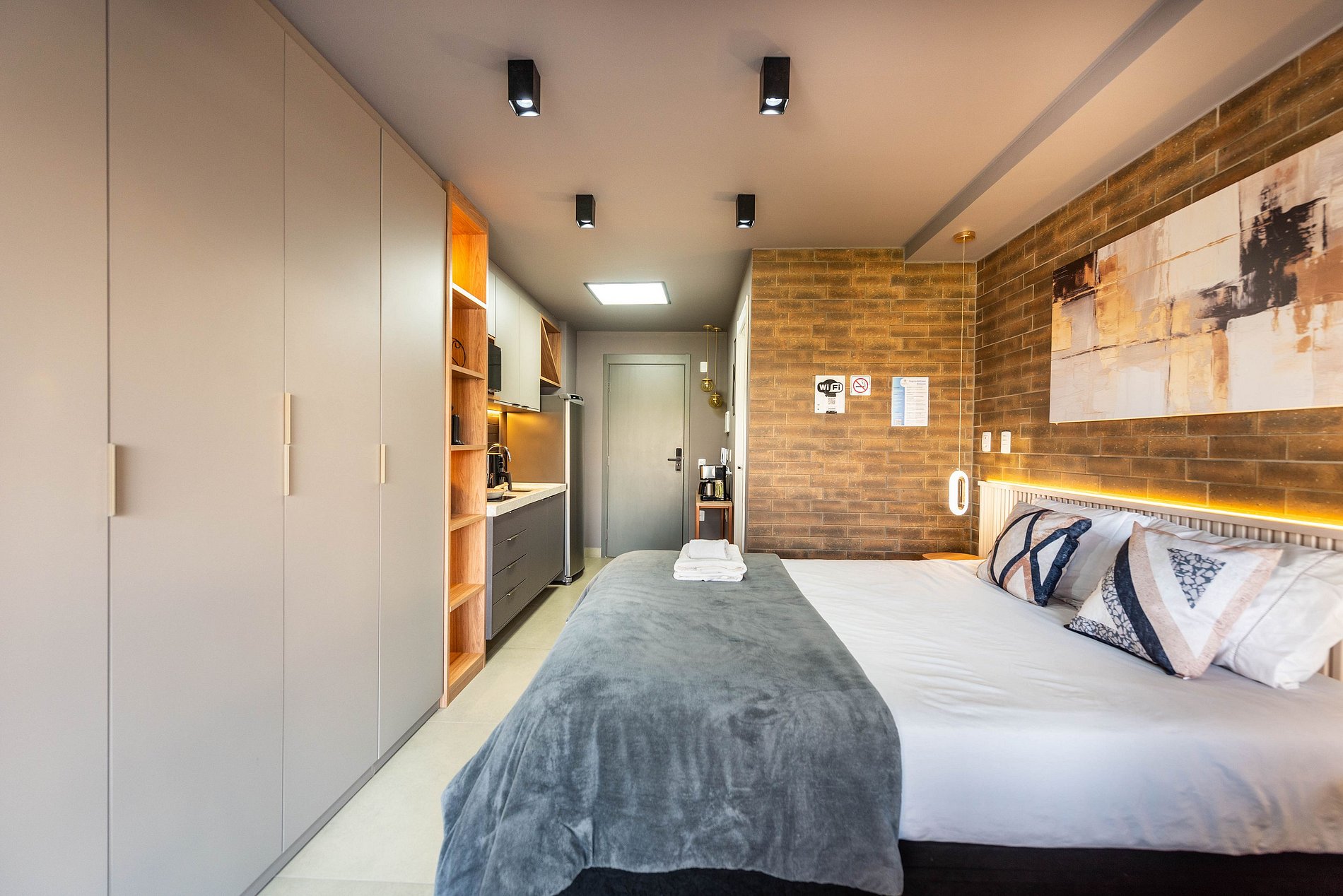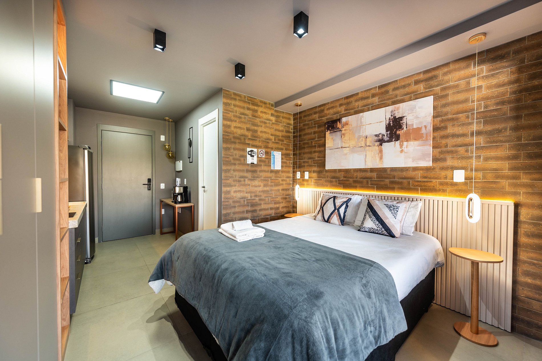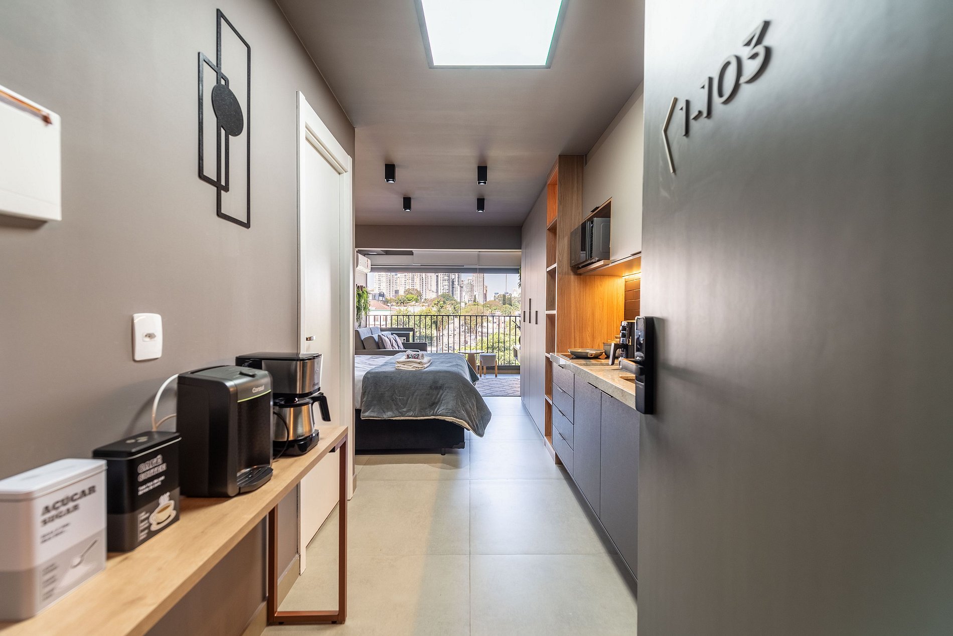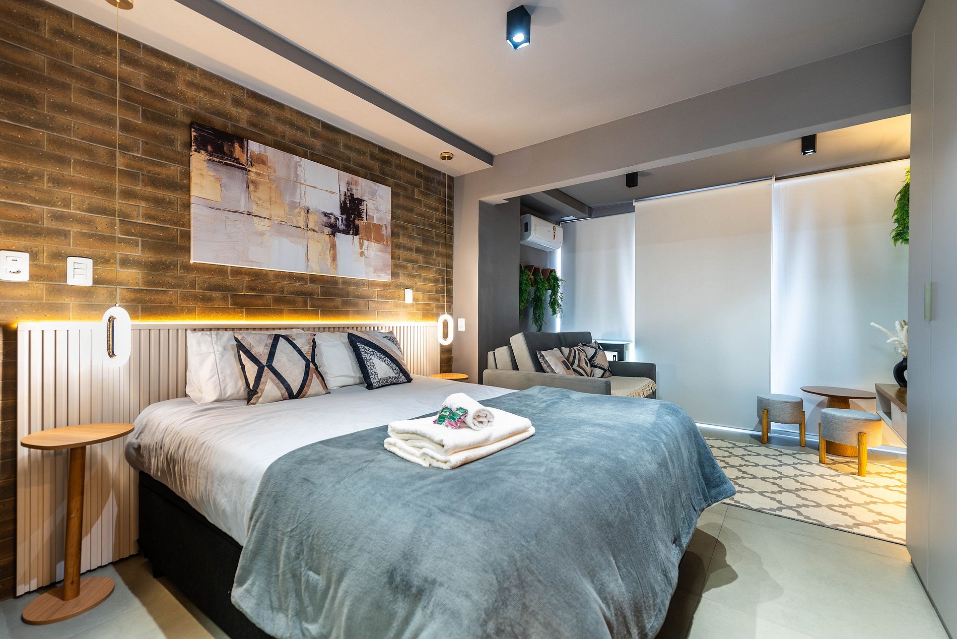 Sinta-se em um refúgio urbano neste studio impecavelmente projetado, onde cada detalhe foi pensado para oferecer uma estadia memorável.