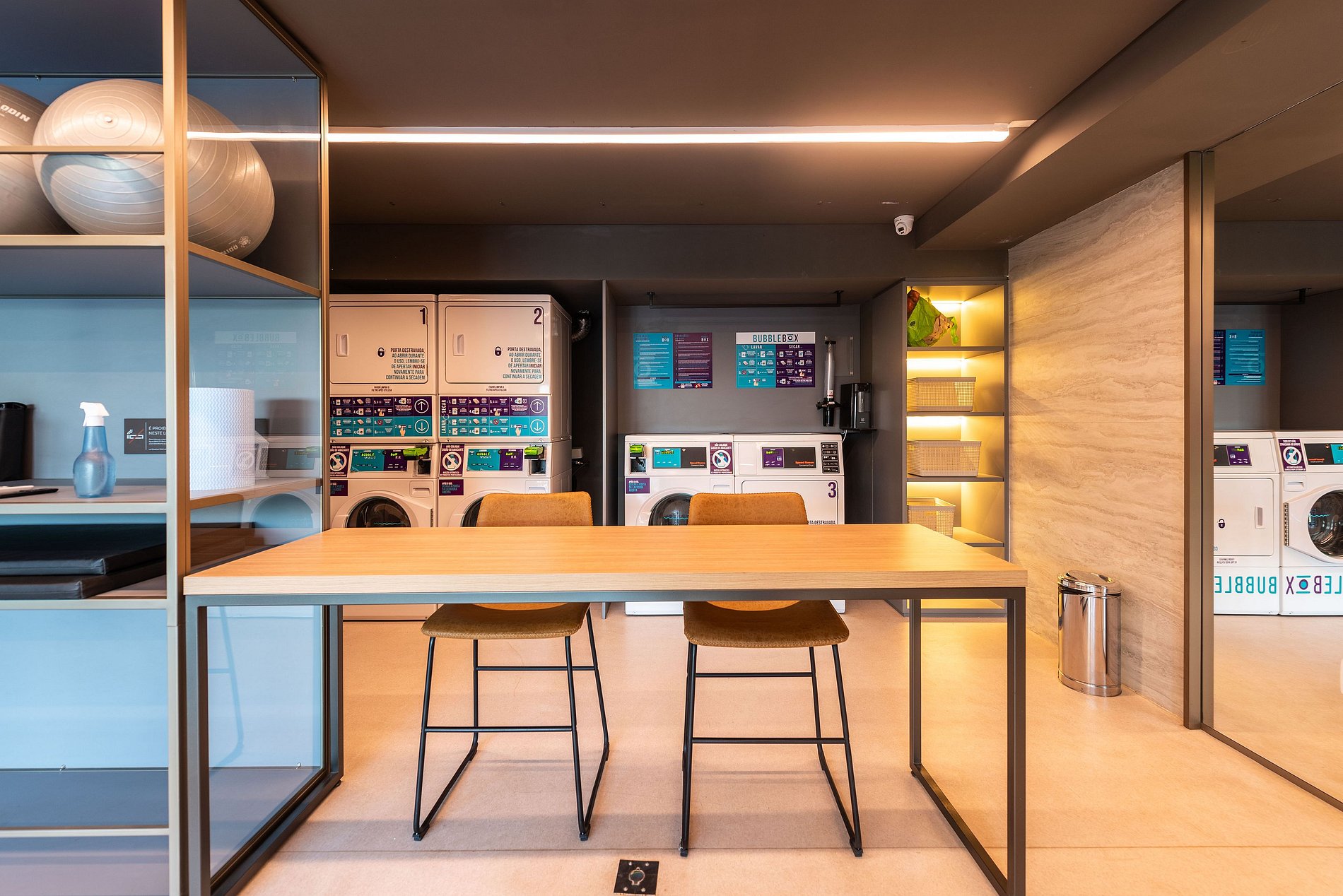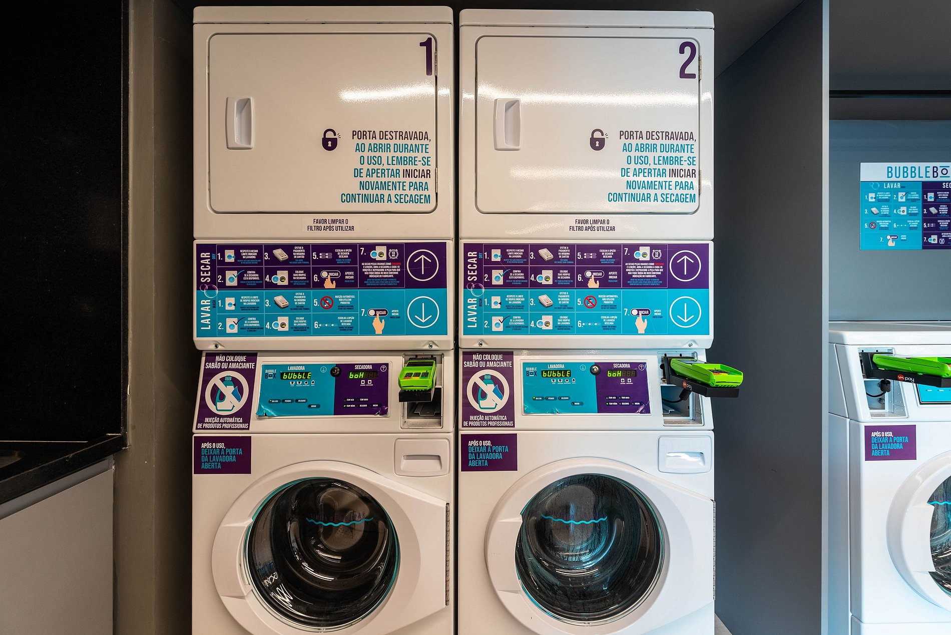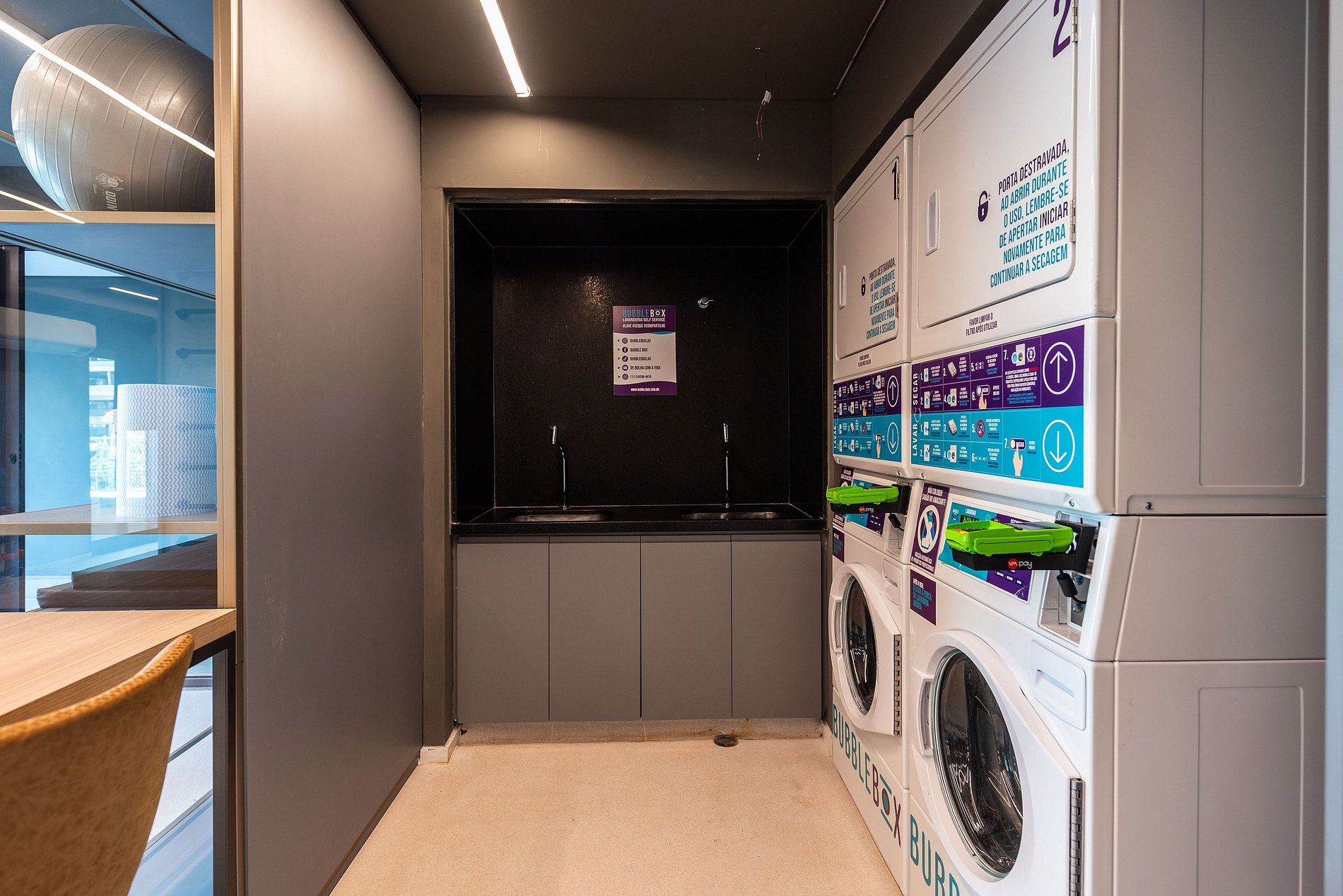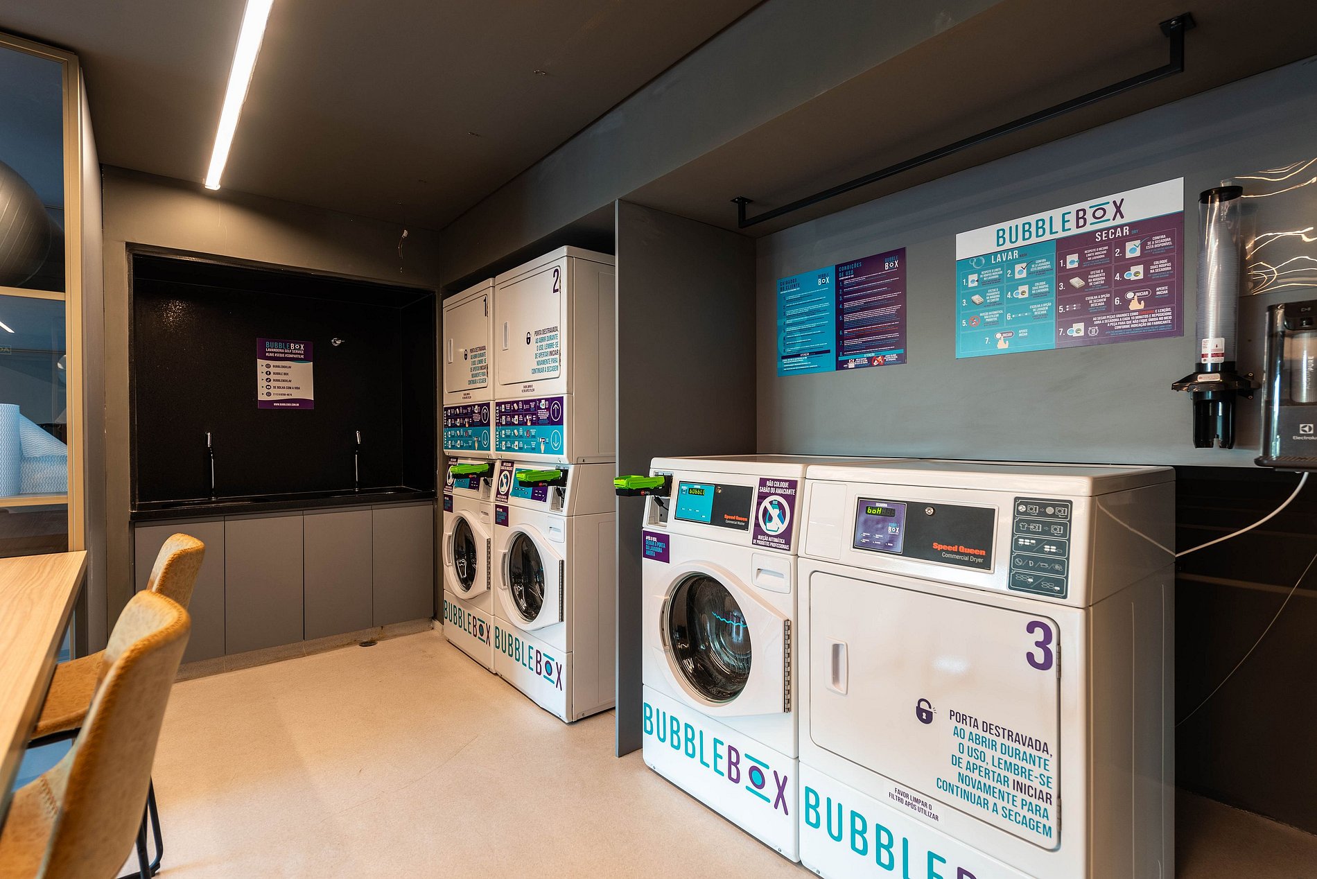 Lavanderia Compartilhada (Bubble Box): Praticidade para estadias mais longas (serviço pago).