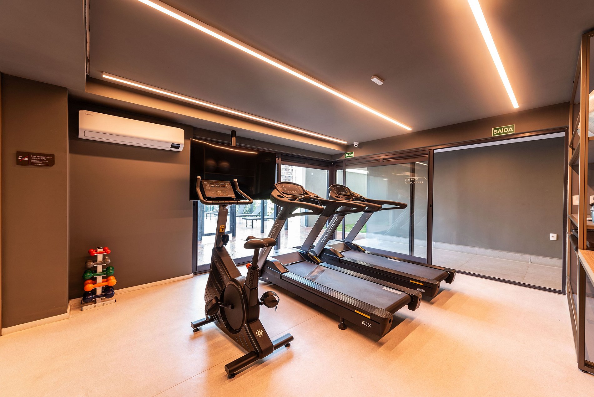 Academia Moderna: Mantenha sua rotina de treinos com equipamentos de ponta.