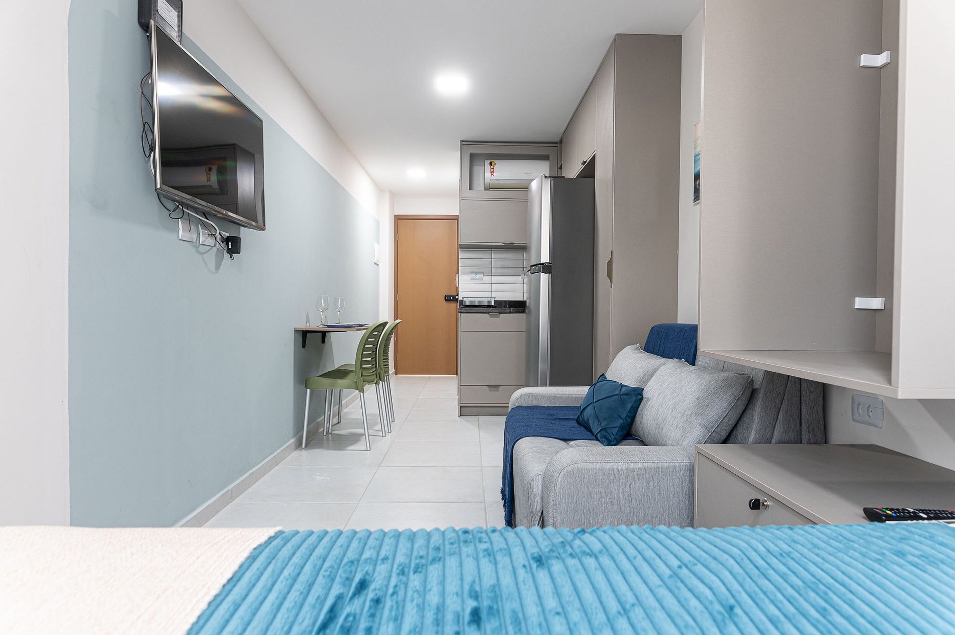 Você estará em um estúdio acolhedor, bem decorado, pensado para oferecer conforto e praticidade. Ambiente integrado: cama de casal, armários, espaço para descanso e lazer. A cozinha está completa — fogão elétrico, forno, geladeira, liquidificador, sanduicheira, cafeteira e utensílios essenciais para preparar suas refeições. Banheiro privativo limpo e funcional. O prédio dispõe de piscina na cobertura, com mobiliário confortável e vista da cidade, ótimo para relaxar ao entardecer. O espaço é ideal para casais, pequenas familias, viajantes a trabalho ou quem quer curtir Porto de Galinhas com autonomia.