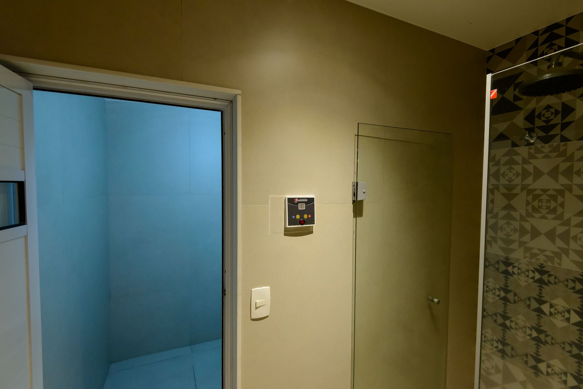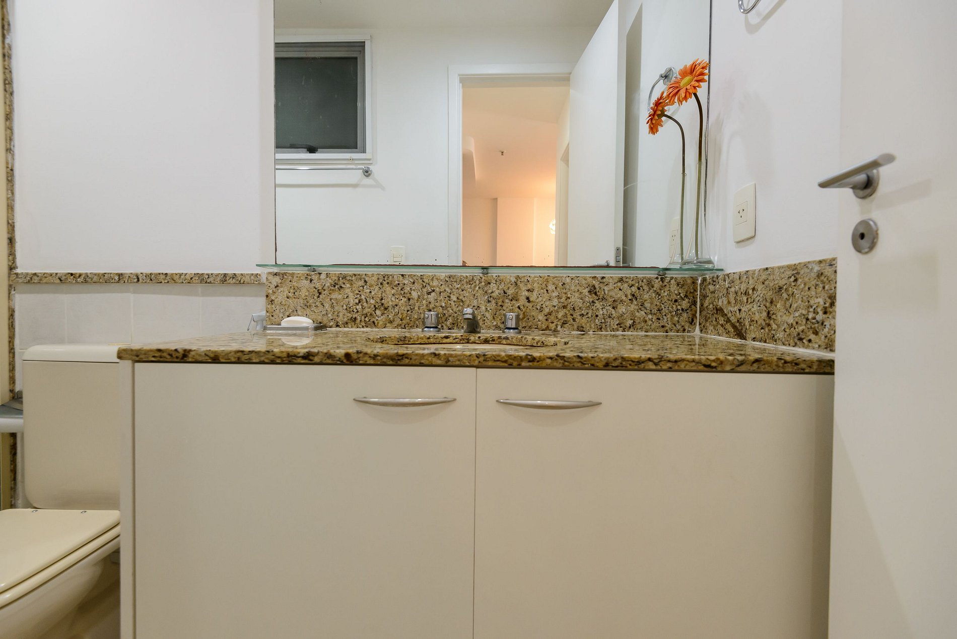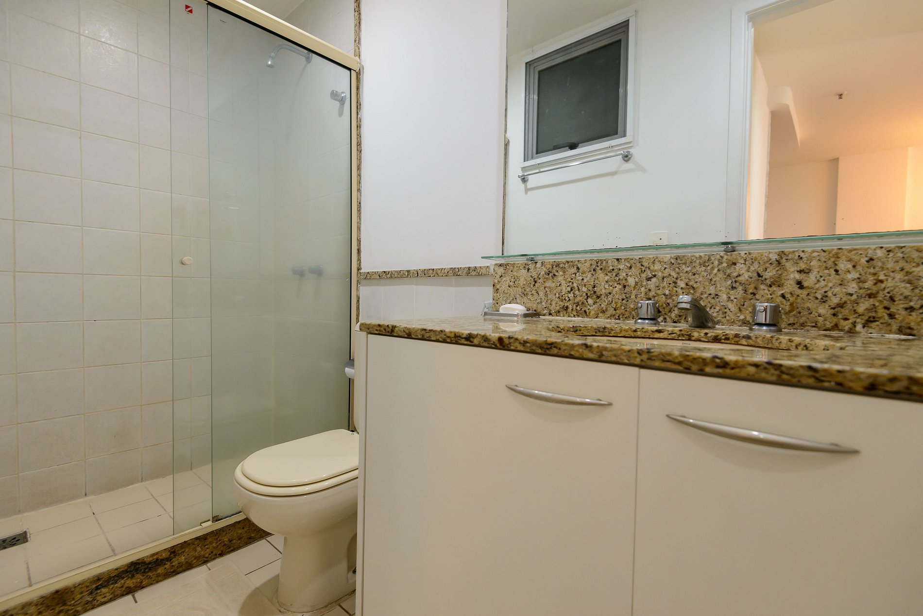 O quarto conta com armários, cama queen com enxoval completo, ar-condicionado, TV e acesso direto à varanda. O banheiro é completo, com chuveiro quente e enxoval de qualidade.