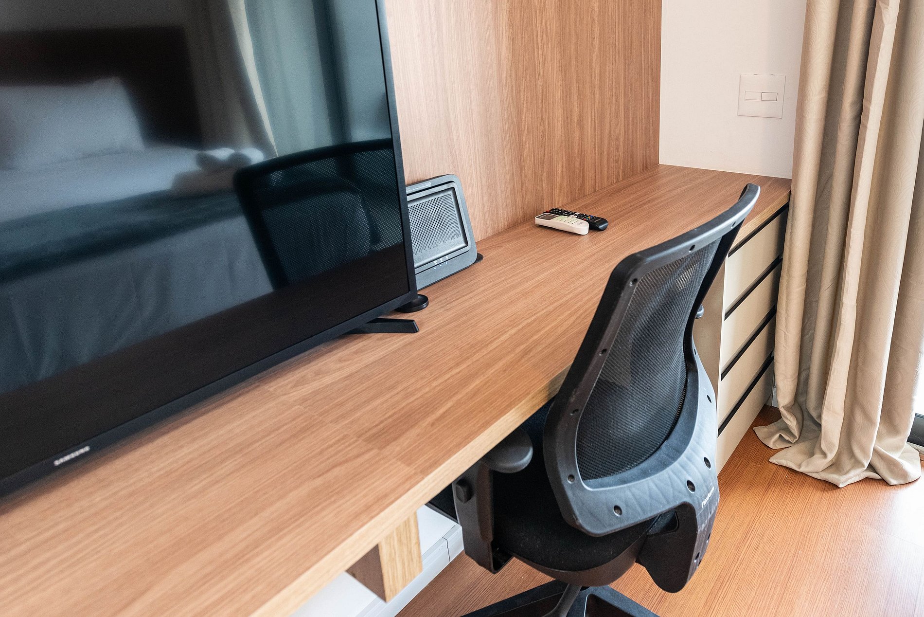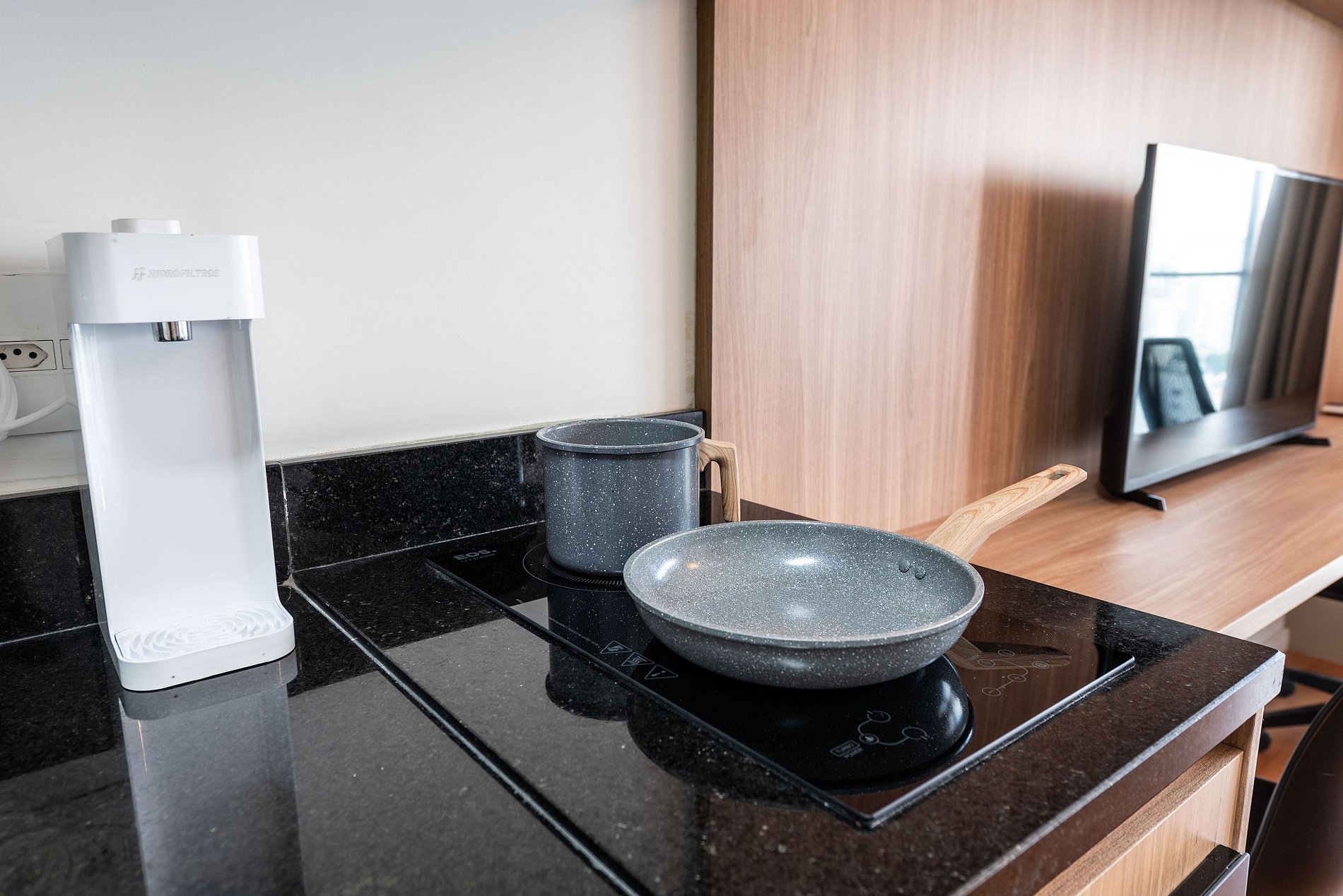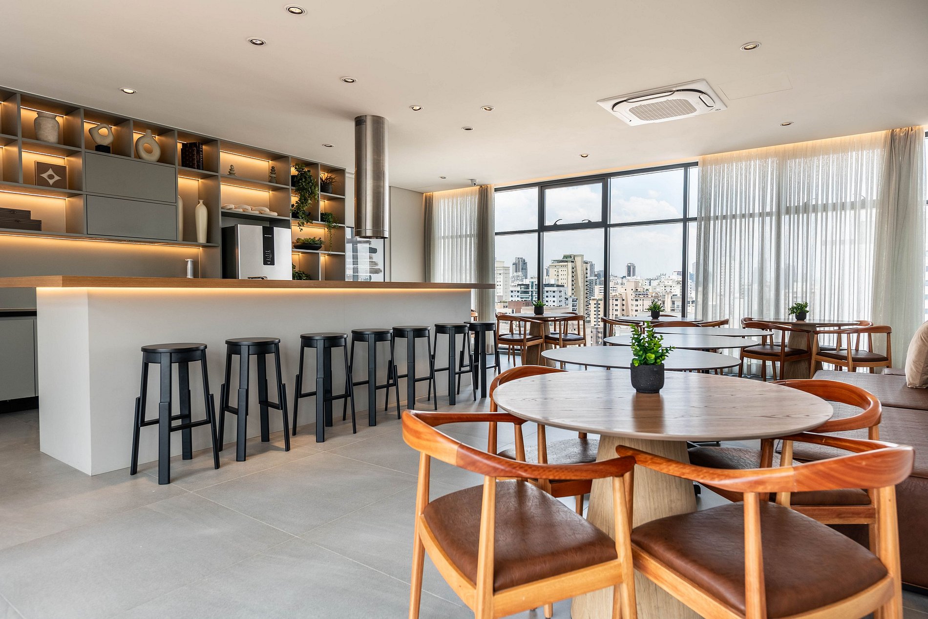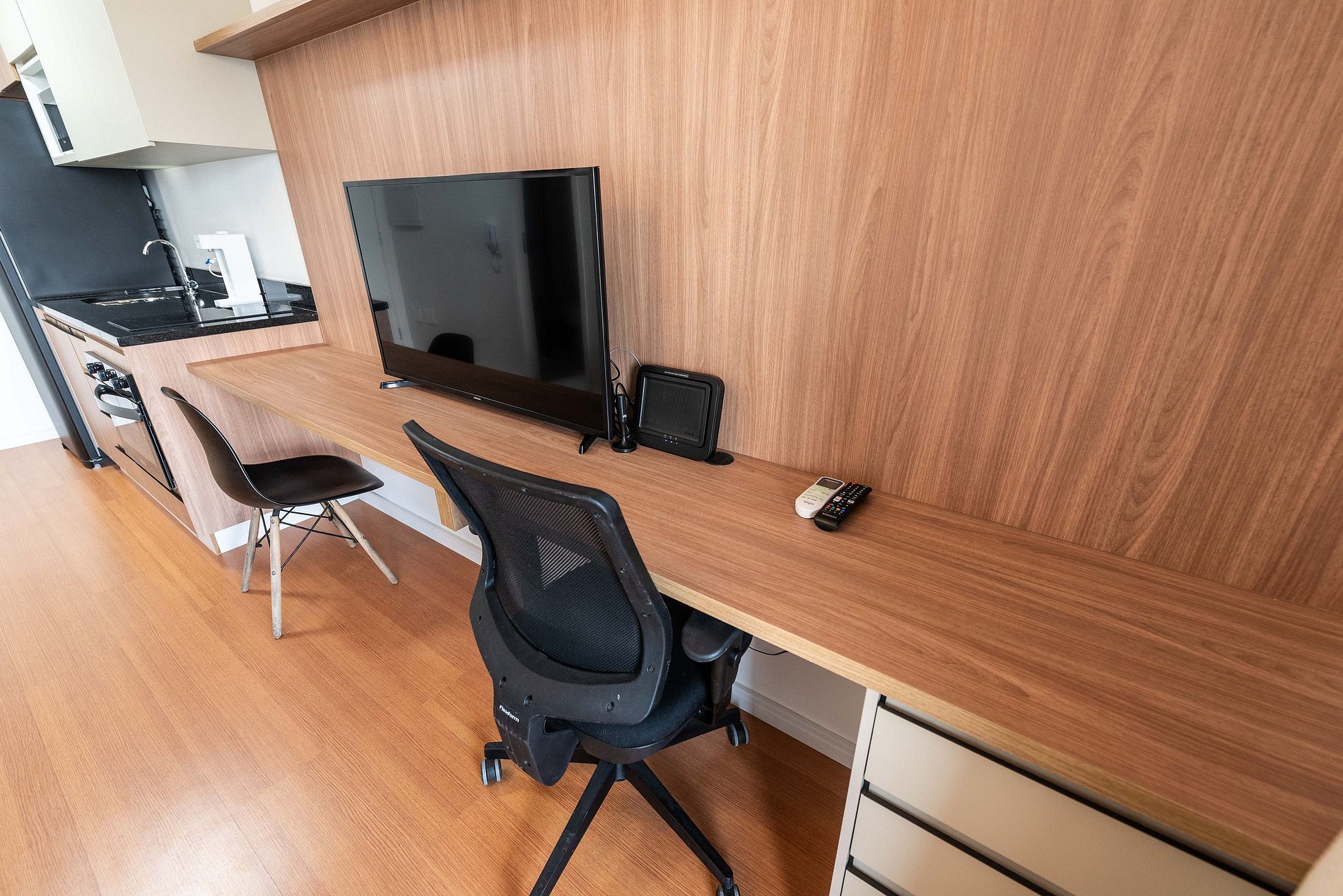 Este studio foi pensado para oferecer conforto, praticidade e uma experiência premium. A cozinha conta com geladeira grande, cooktop, micro-ondas e utensílios completos para preparar refeições. O ambiente possui uma cama queen size com enxoval de qualidade, TV grande com ótima iluminação e uma área de trabalho funcional. A varanda envidraçada com vista panorâmica da cidade traz um charme especial ao espaço, perfeita para relaxar ou trabalhar aproveitando a luz natural. O prédio é moderno, elegante e oferece comodidades de alto padrão: Piscina na cobertura com vista 360°, academia completa, coworking equipado, bicicletário, áreas comuns amplas e bem cuidadas. É a escolha ideal para quem busca praticidade, qualidade e boa localização.
