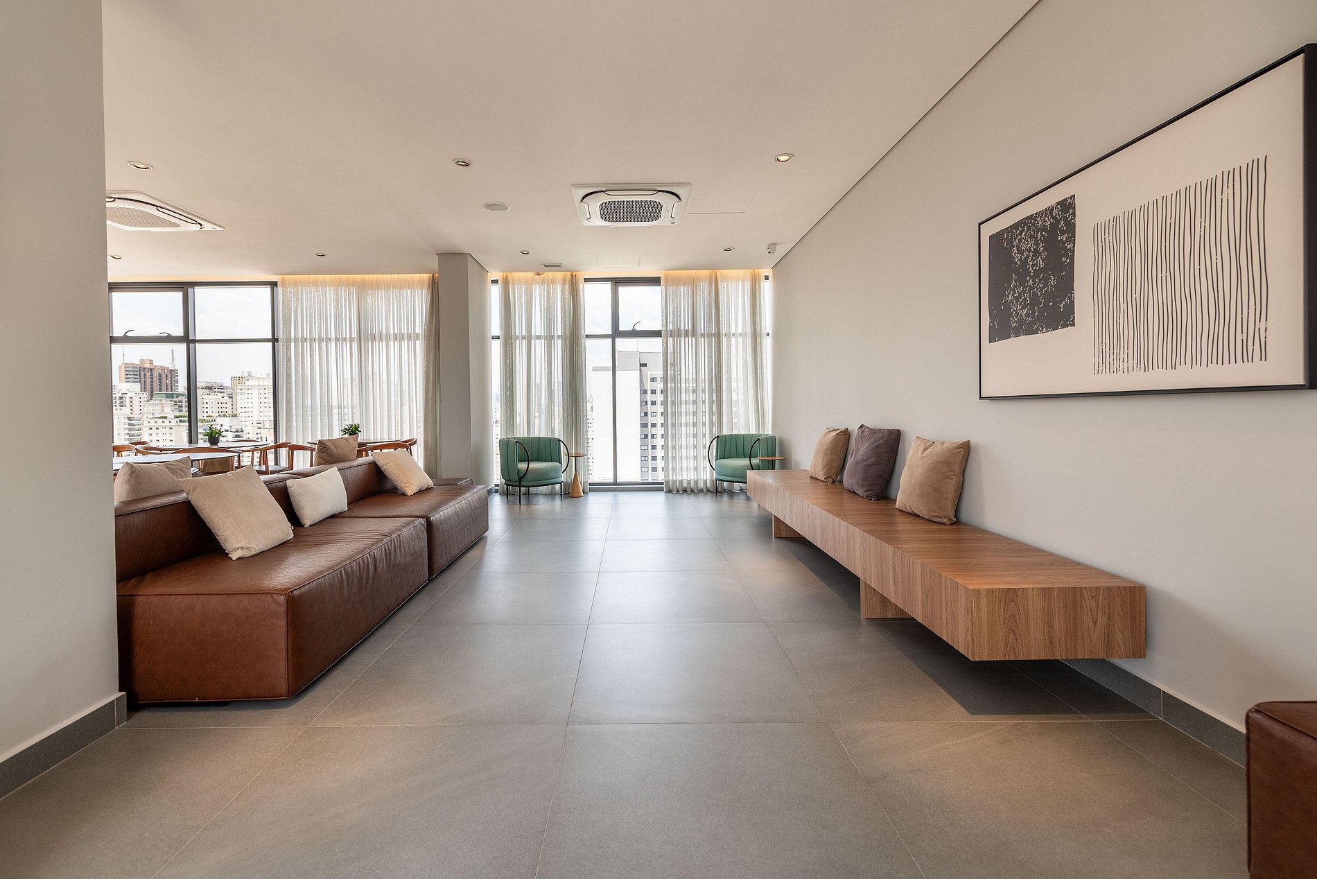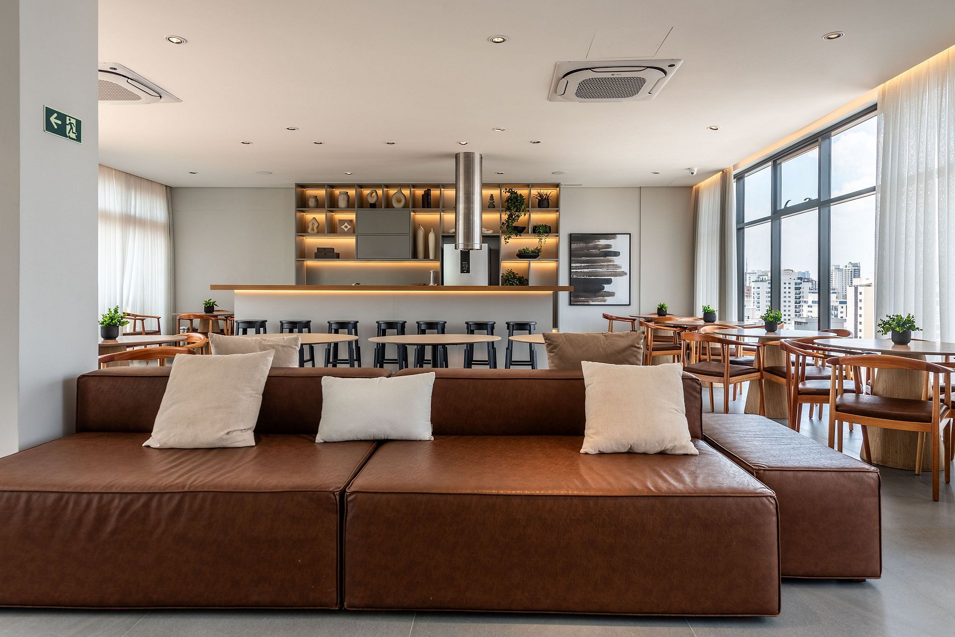 - Não é permitido permanecer nas áreas comuns antes do check-in ou após o checkout, e o uso delas segue as regras do condomínio.