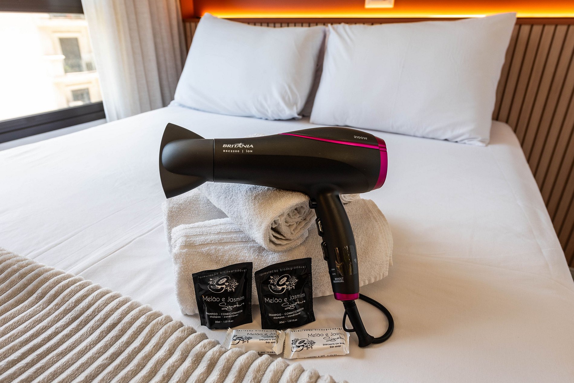 Facilidades: Ar-condicionado, Smart TV virada para a cama/mesa e armários espaçosos para bagagem.