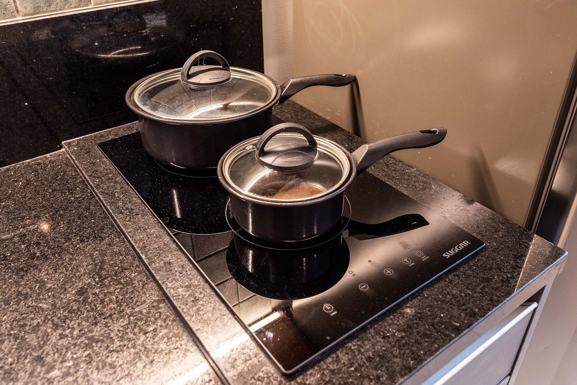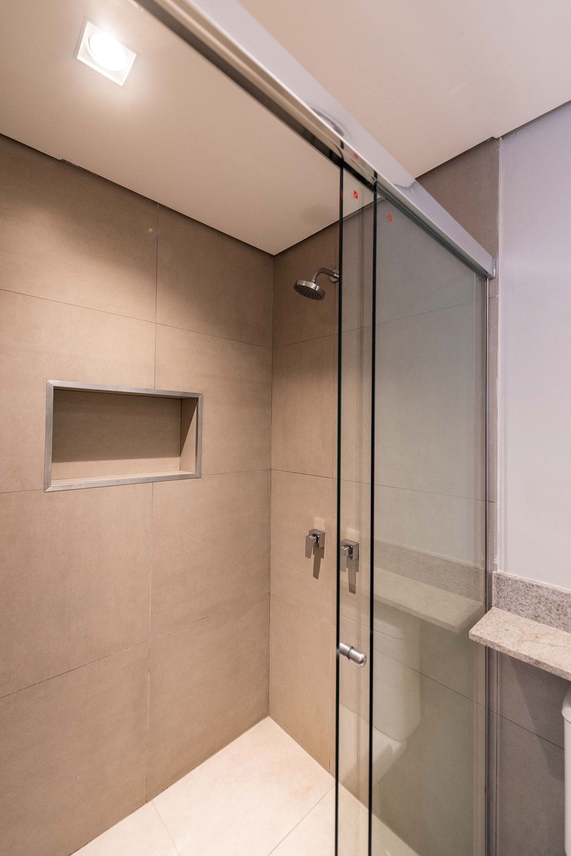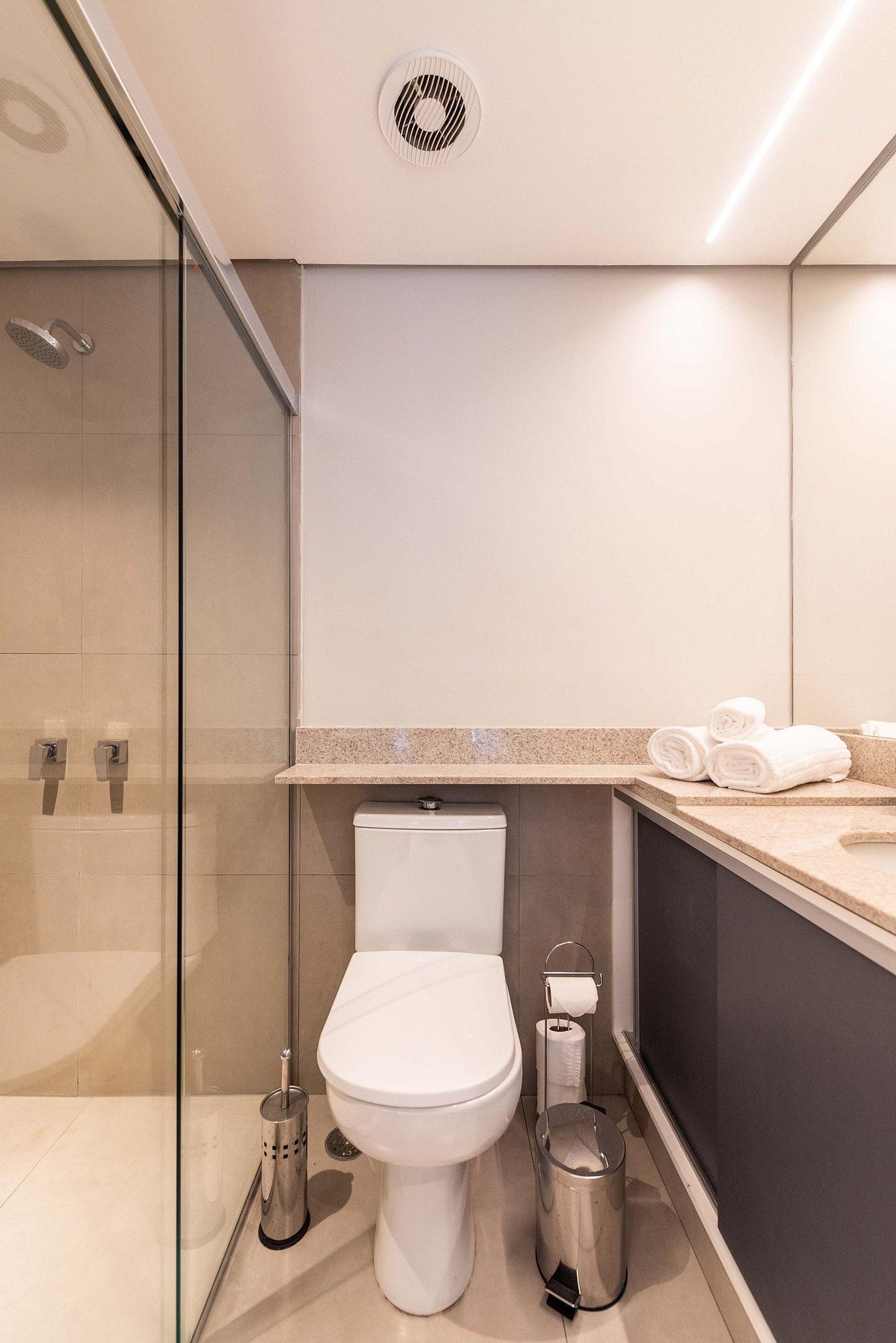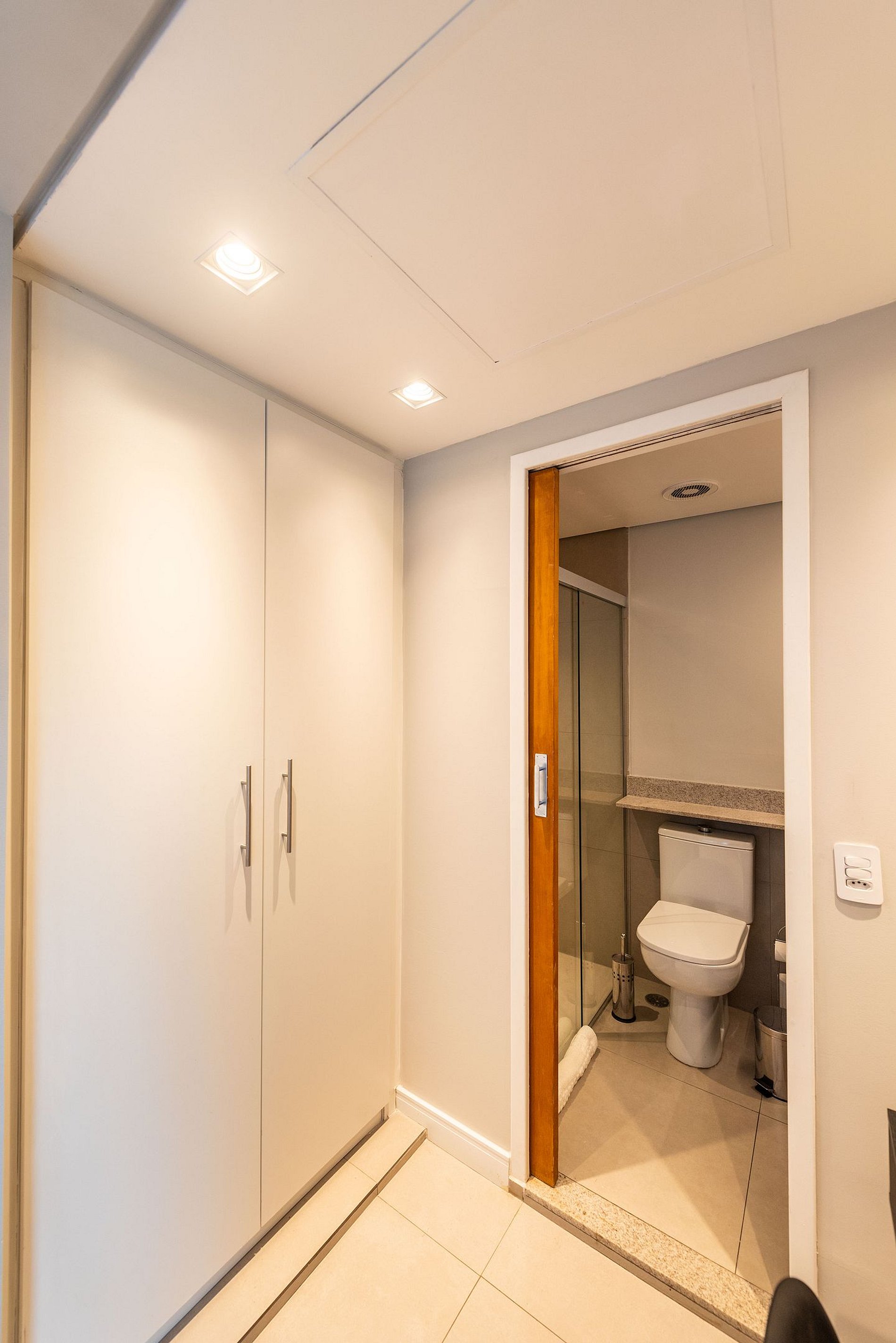 Este studio foi planejado para oferecer conforto e funcionalidade. Conta com cama de casal com enxoval de alto padrão, Smart TV, ar-condicionado, mesa de trabalho com cadeiras, cozinha completa com cooktop, micro-ondas, geladeira grande e utensílios para preparar refeições. O banheiro é moderno, com ducha quente e enxoval macio. O apartamento recebe luz natural e possui uma atmosfera elegante, ideal para estadias curtas ou longas.