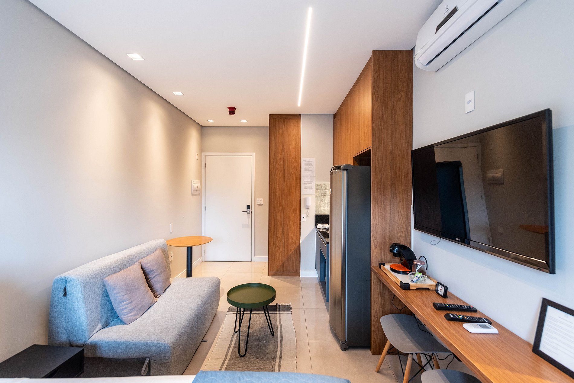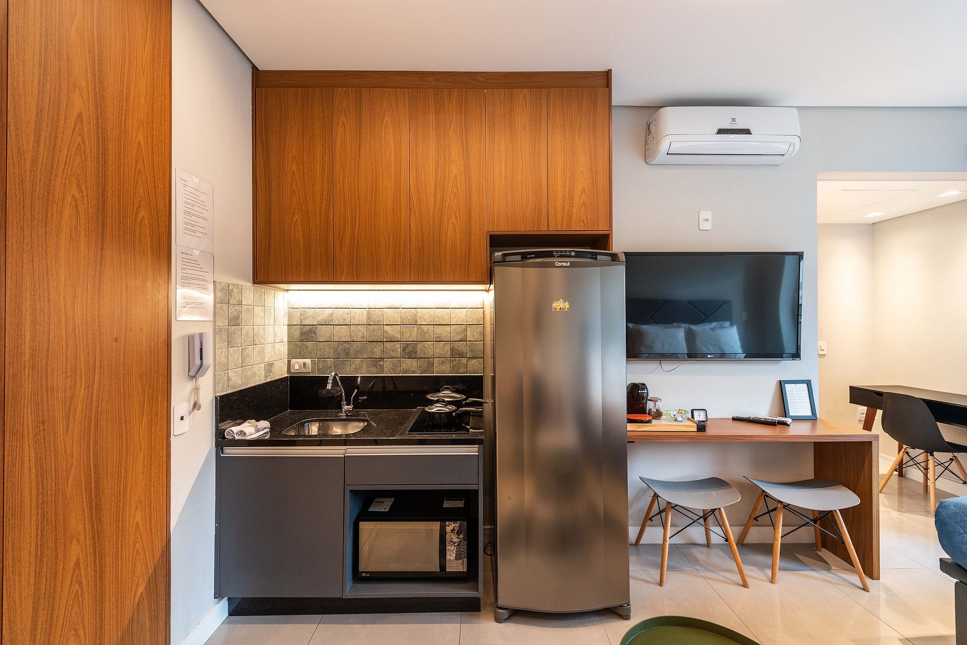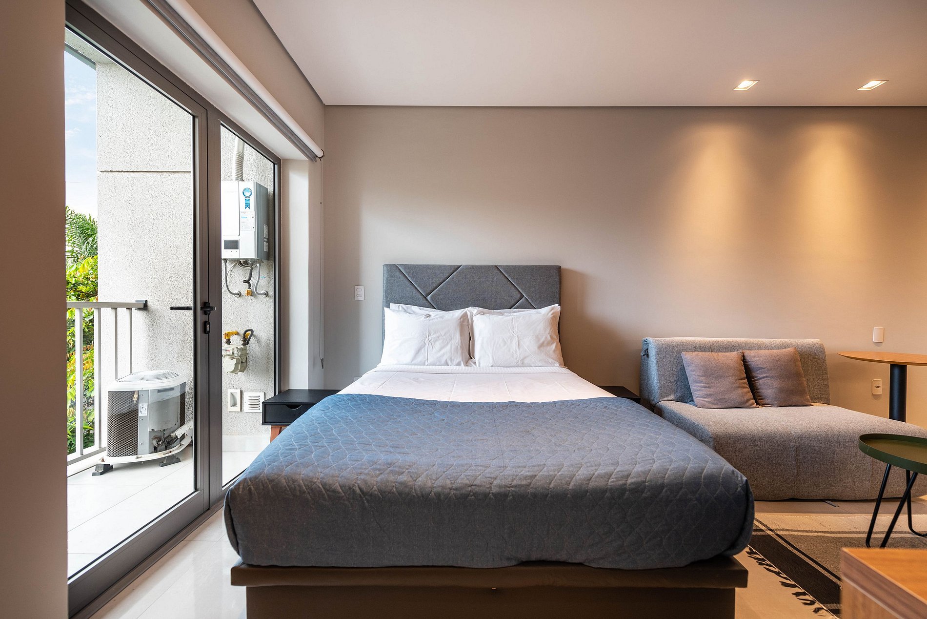 Studio completo no coração de Pinheiros, a 2 minutos do metrô. Ambiente moderno, equipado e perfeito para viagens a trabalho ou lazer. Wi-Fi rápido, cozinha completa, cama confortável, ar-condicionado e mesa de trabalho. Prédio novo com piscina, academia, coworking, lavanderia e mini mercado. Conforto, praticidade e localização imbatível!