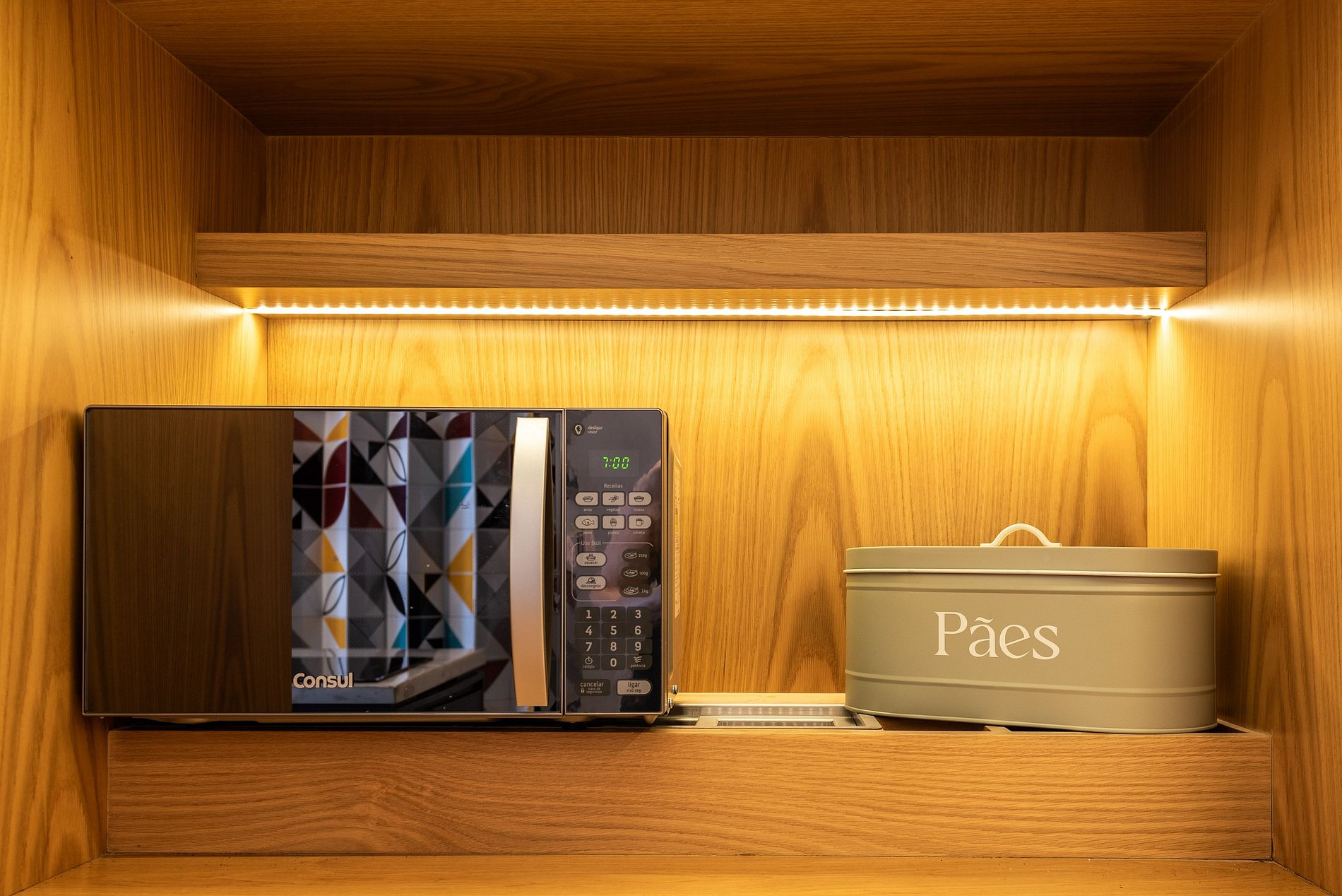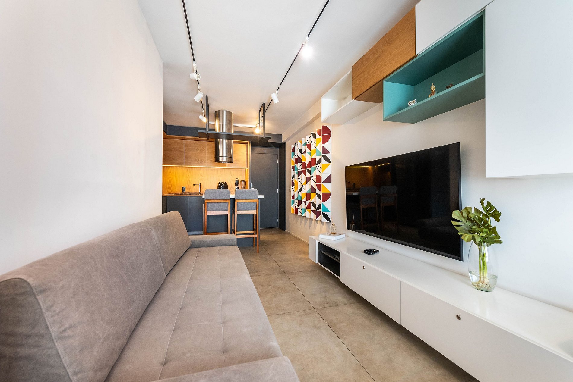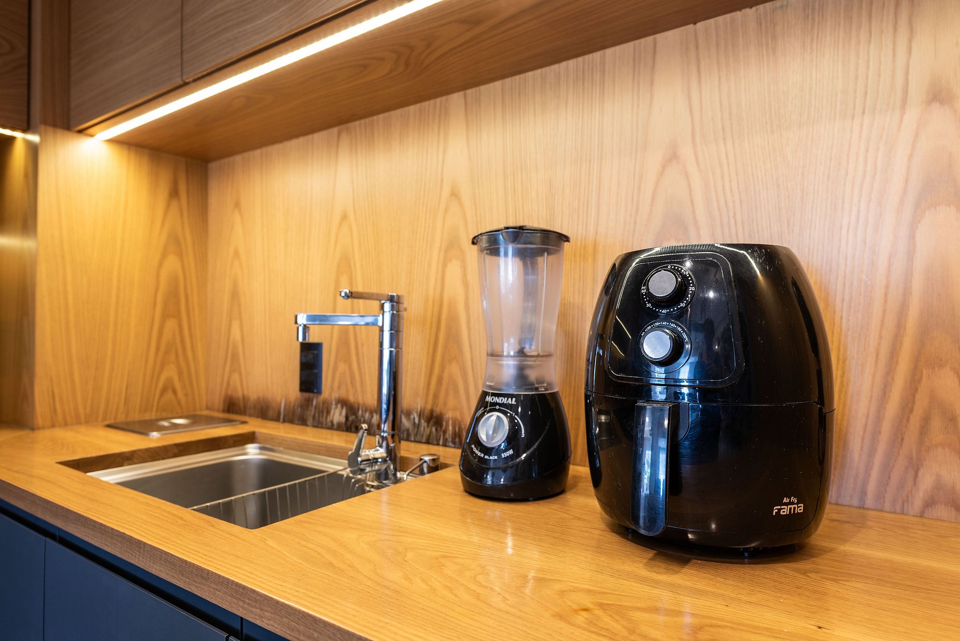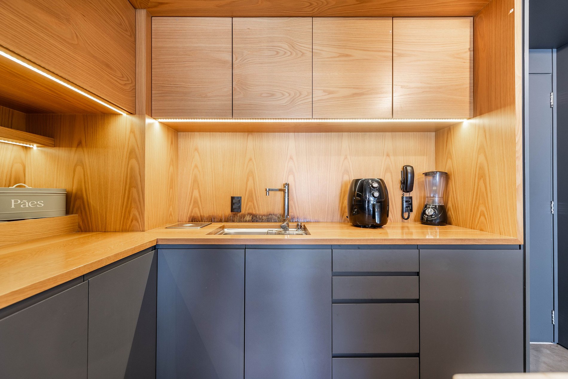 O apartamento conta com ambiente integrado, bem iluminado e mobiliado, ideal para estadias curtas ou longas. A cozinha é compacta e funcional, perfeita para o dia a dia. O espaço é silencioso, confortável e preparado para quem trabalha remotamente ou deseja relaxar após um dia na cidade.