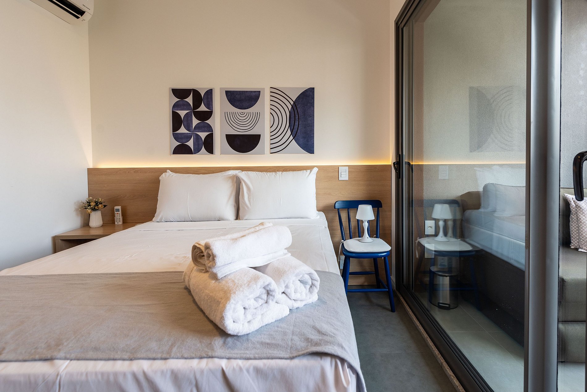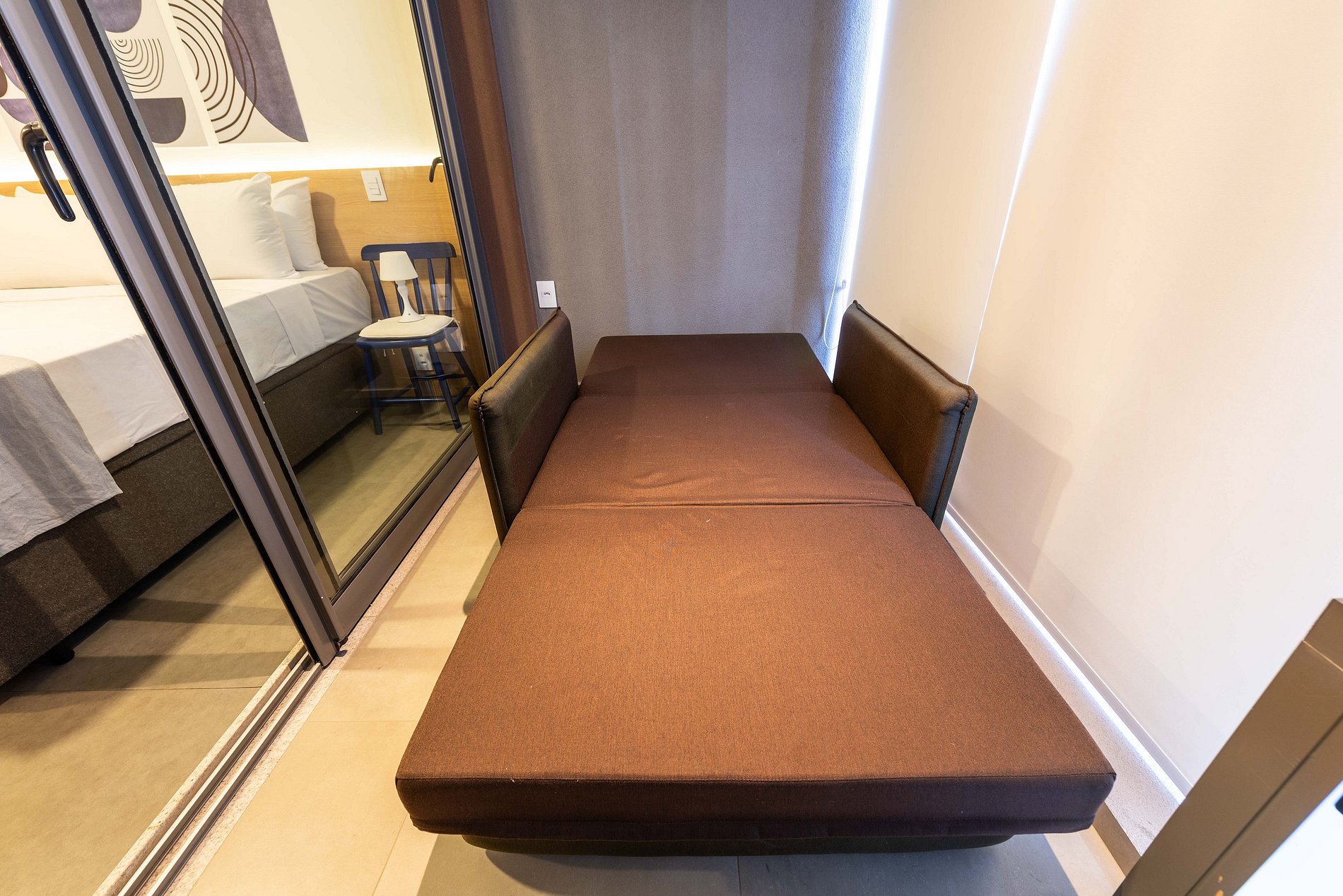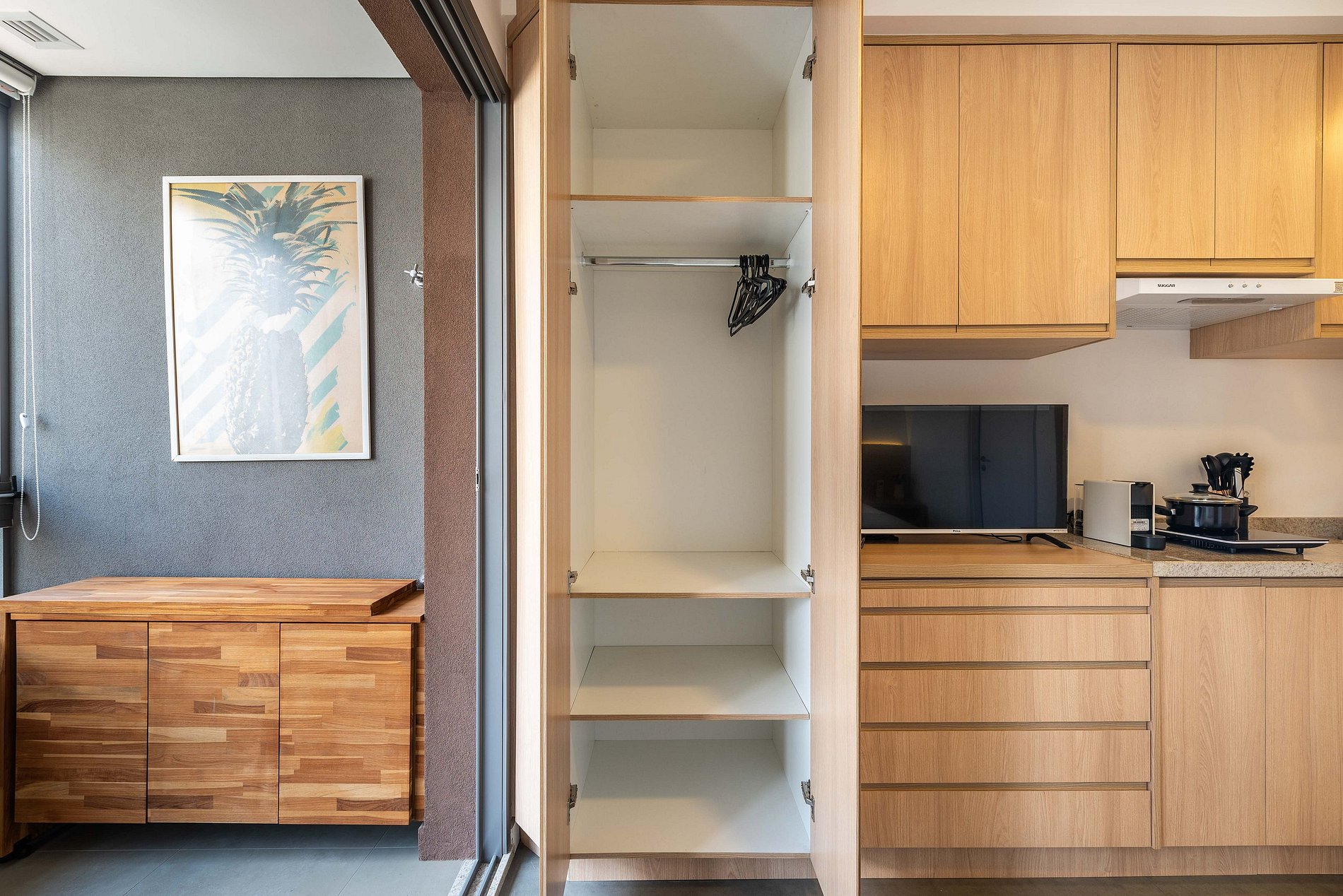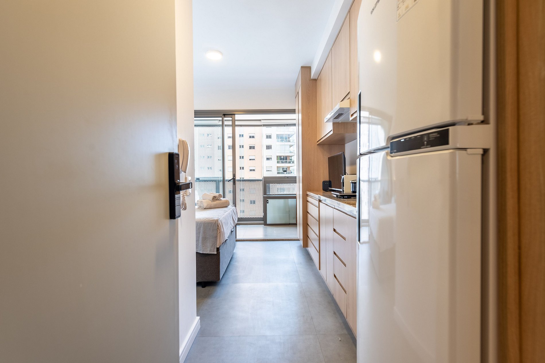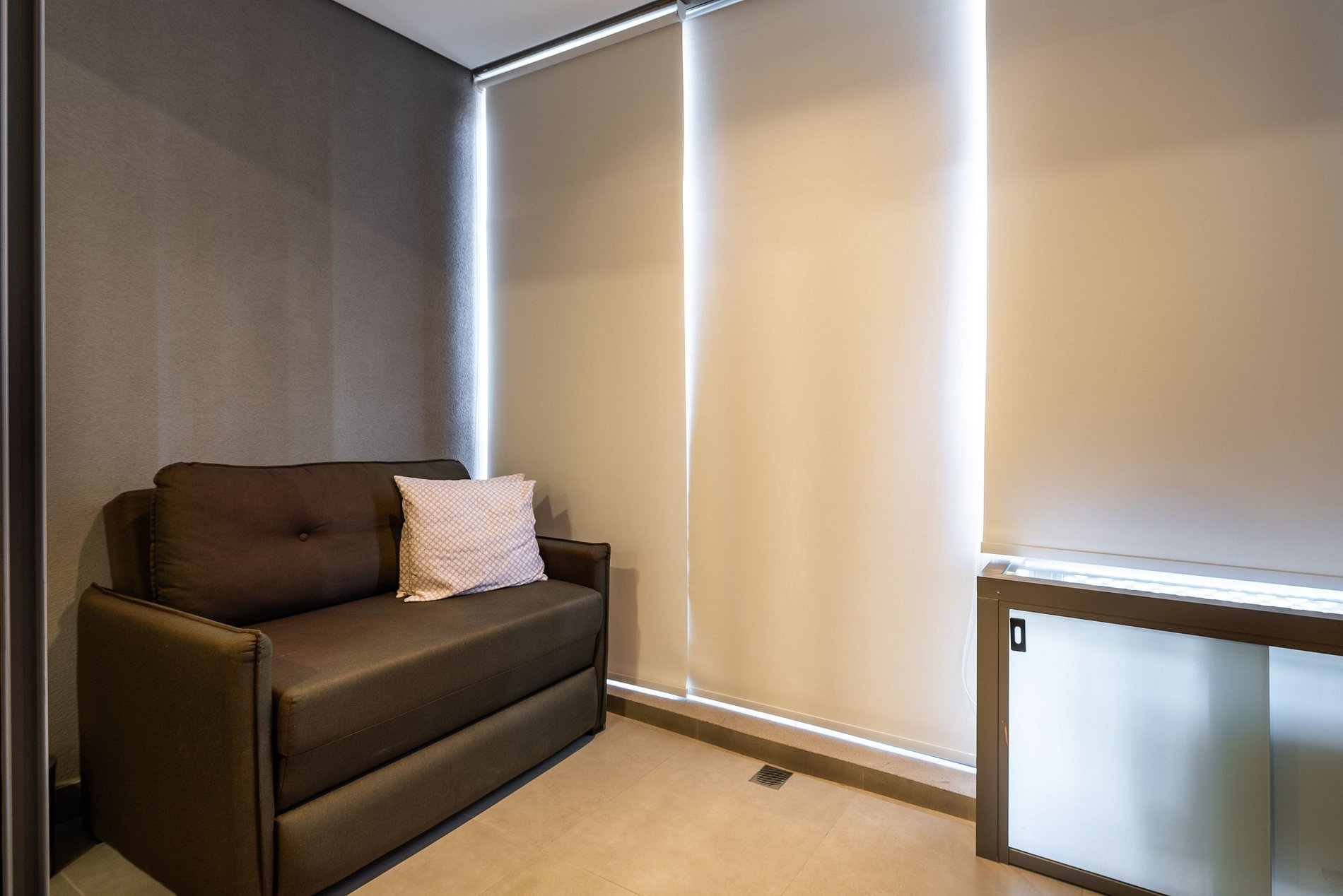 O apartamento conta com ambiente integrado, decoração moderna e otimizada para o máximo aproveitamento do espaço. Ideal para casais, viajantes solo ou profissionais em viagem a trabalho.