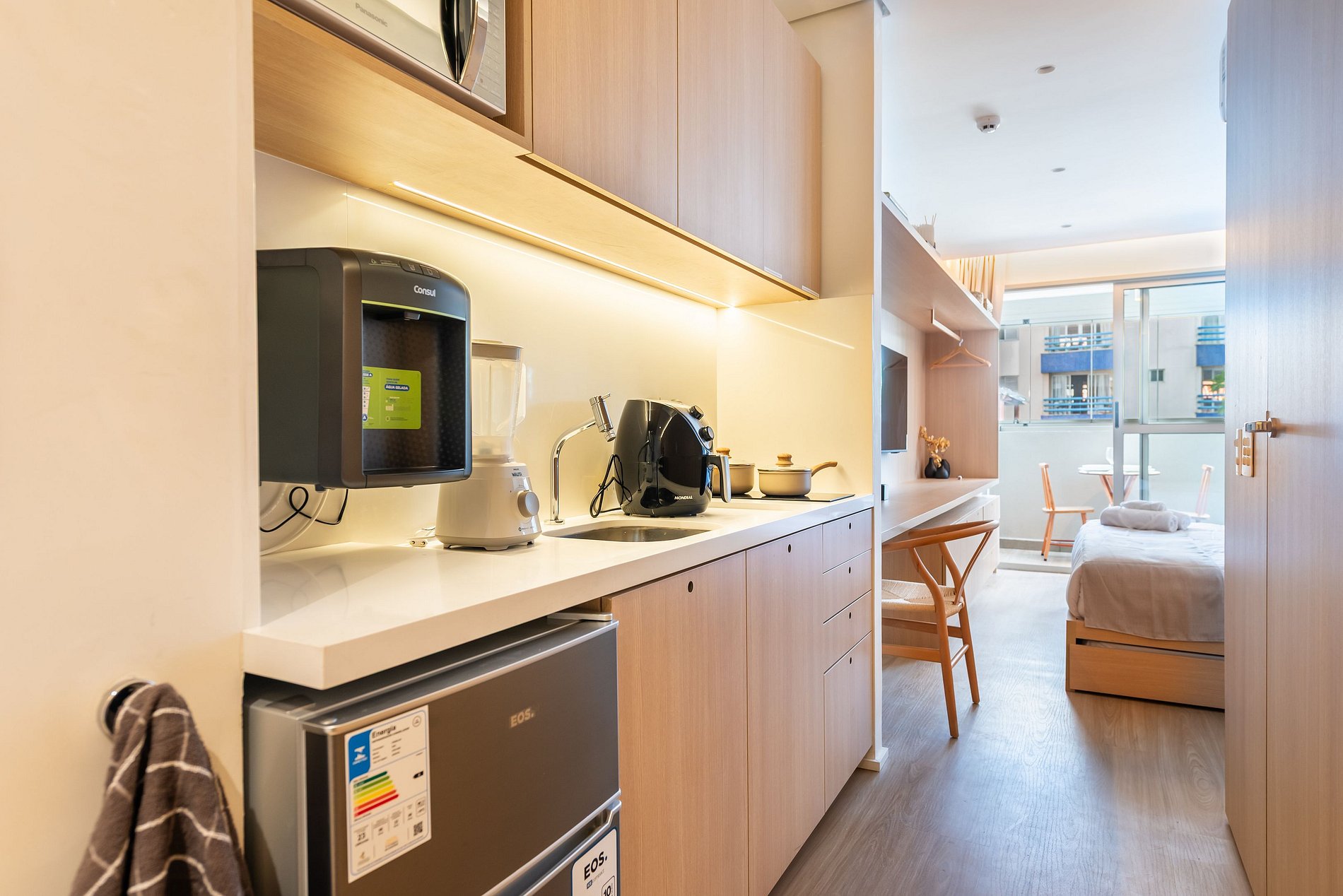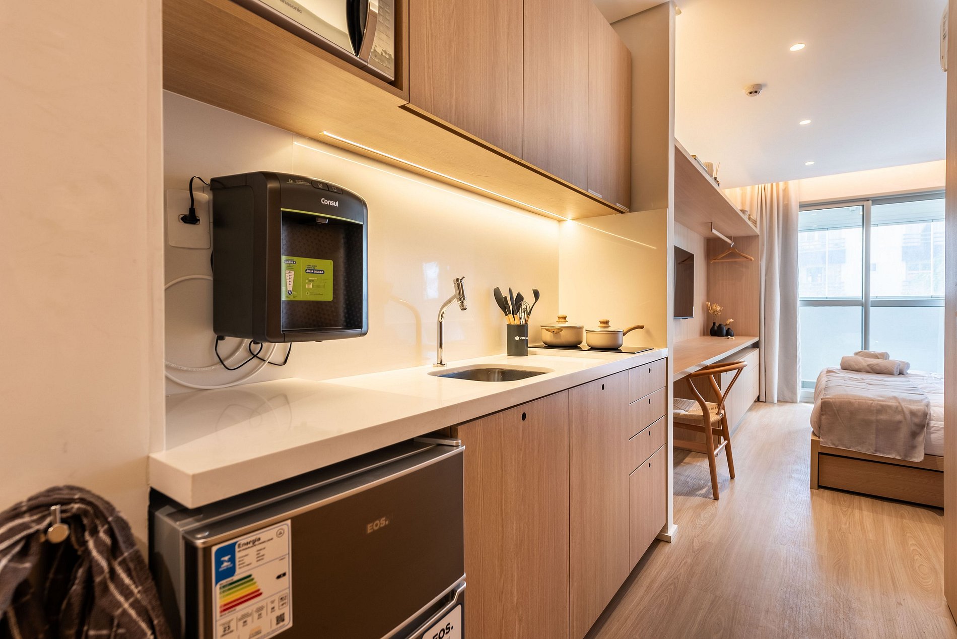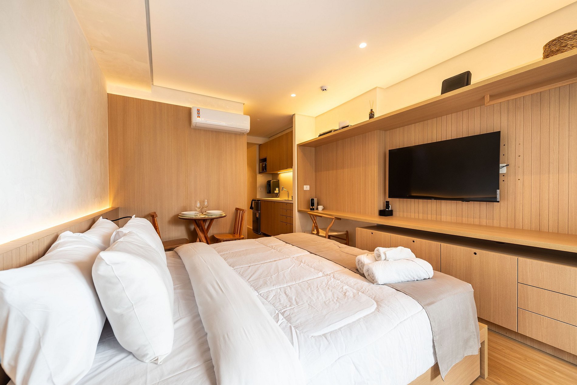 Este studio foi preparado para oferecer uma experiência premium, confortável e funcional, ideal para estadias curtas ou longas.