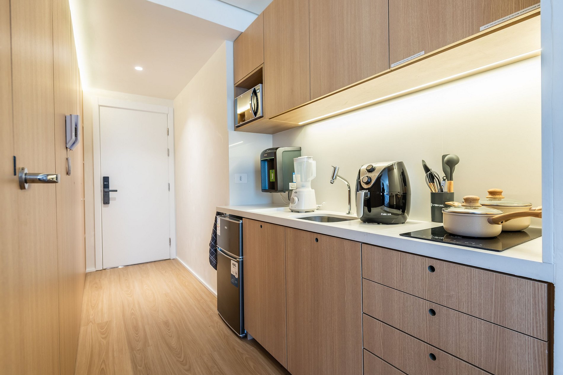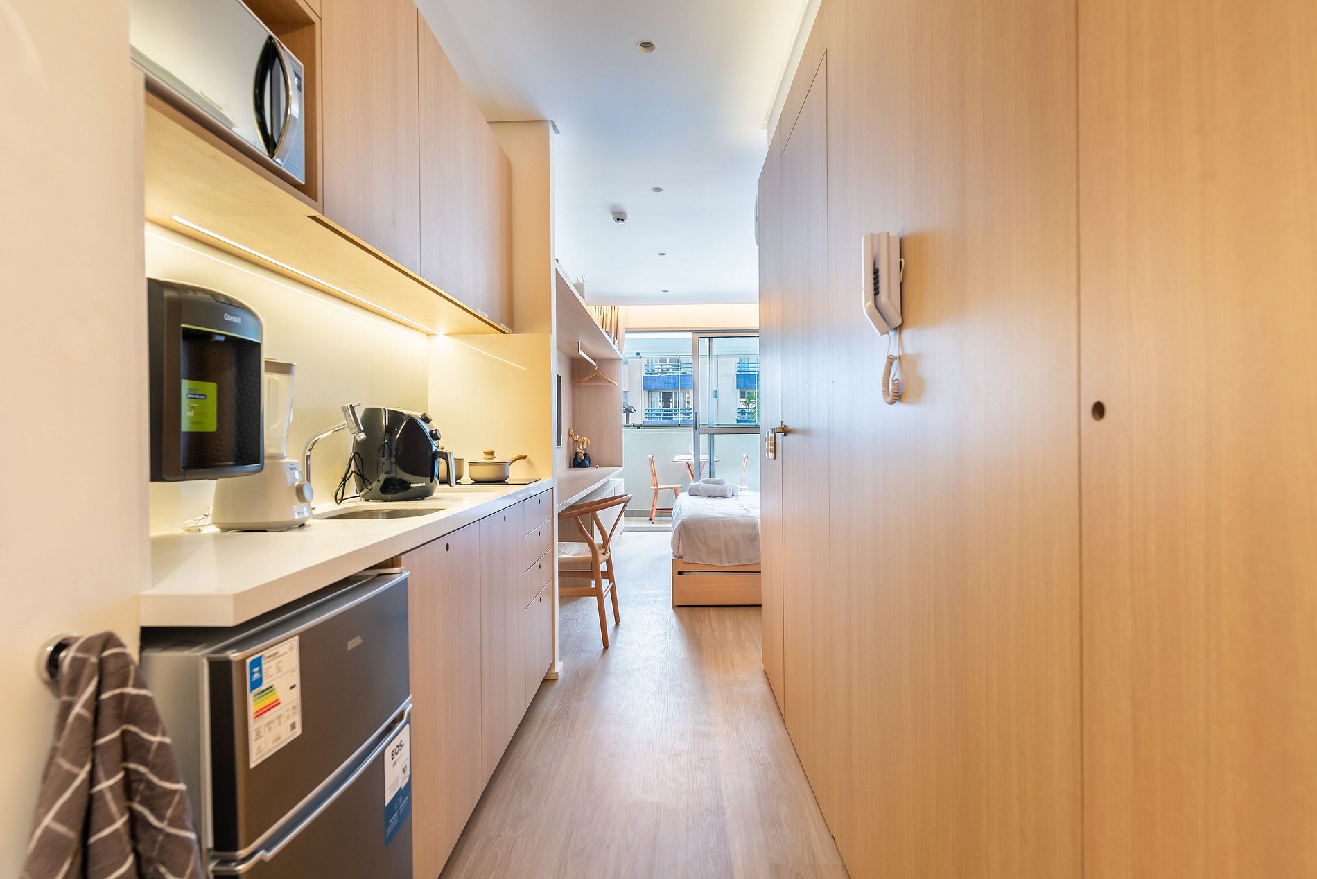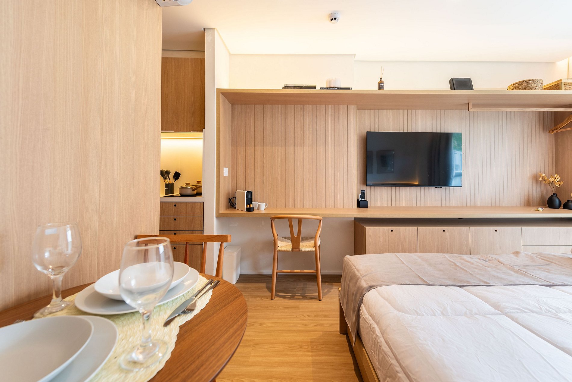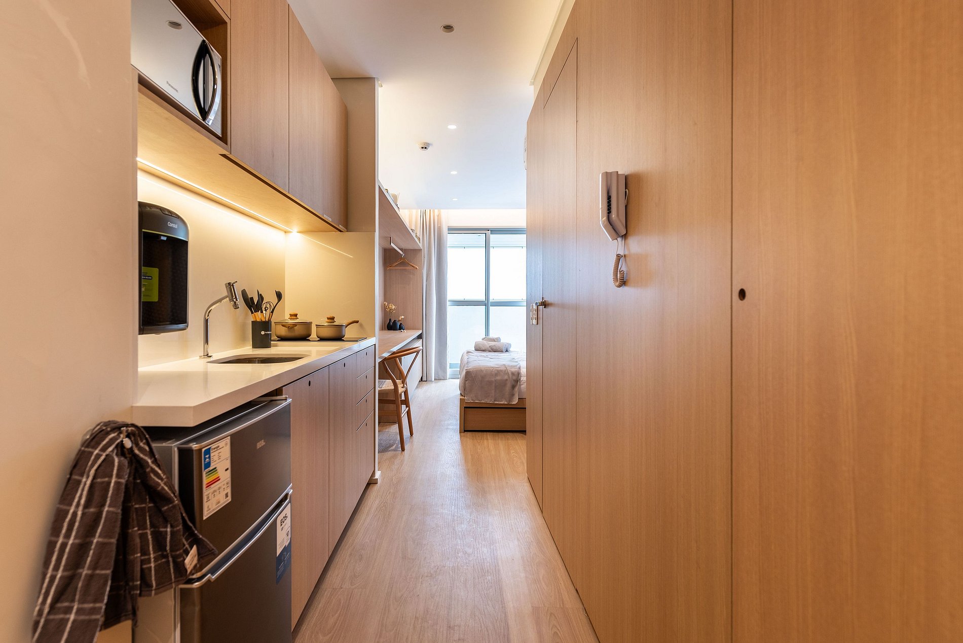 Este studio foi preparado para oferecer uma experiência premium, confortável e funcional, ideal para estadias curtas ou longas.