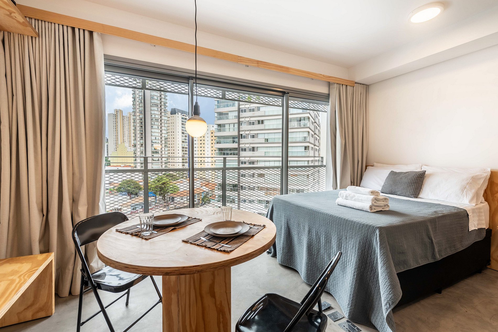 Nosso studio foi cuidadosamente reformado para oferecer o máximo de conforto e praticidade. Com uma decoração contemporânea e uma vista aberta deslumbrante, o espaço é ideal para quem busca um ambiente acolhedor e funcional. A cama confortável, a cozinha totalmente equipada e o espaço de trabalho com Wi-Fi de alta velocidade tornam este estúdio a escolha perfeita tanto para estadias curtas quanto longas.