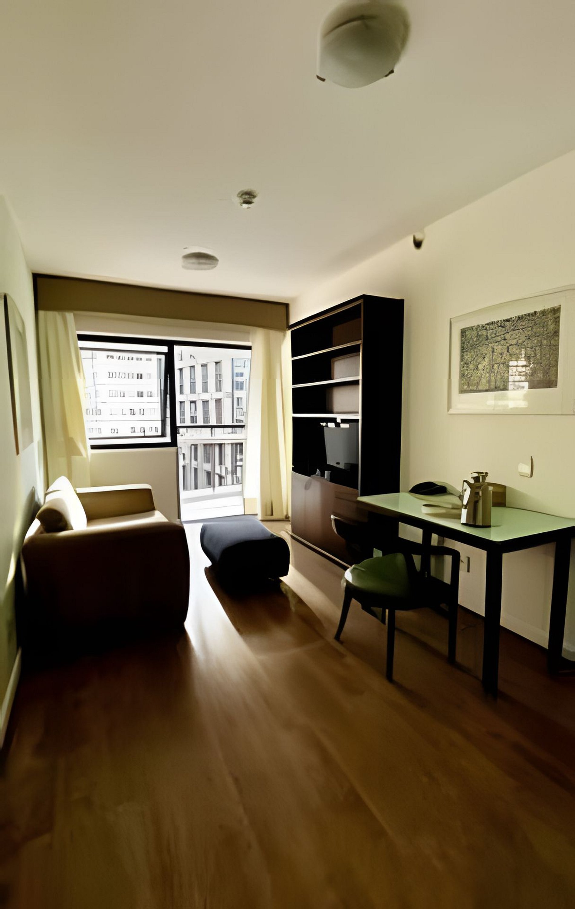 Este flat localizado no Grand Mercure Itaim Bibi combina conforto e sofisticação em um dos bairros mais desejados de São Paulo. O apartamento inclui uma sala de estar aconchegante com sofá, TV de tela plana que gira para o quarto, e uma mesa de trabalho perfeita para quem precisa conciliar lazer e trabalho. A cozinha compacta é integrada à sala, equipada com frigobar, micro-ondas, cafeteira elétrica e utensílios básicos, ideal para refeições rápidas e práticas. O quarto conta com uma confortável cama king size, e o ambiente é climatizado com ar-condicionado. A varanda privativa oferece uma bela vista dos modernos arranha-céus do Itaim Bibi, ideal para tomar um café da manhã tranquilo. O banheiro é espaçoso, com uma ampla pia, secador de cabelo, e chuveiro com aquecimento a gás, garantindo uma experiência relaxante após um dia na cidade. O apartamento também dispõe de armário com cofre para a sua segurança.