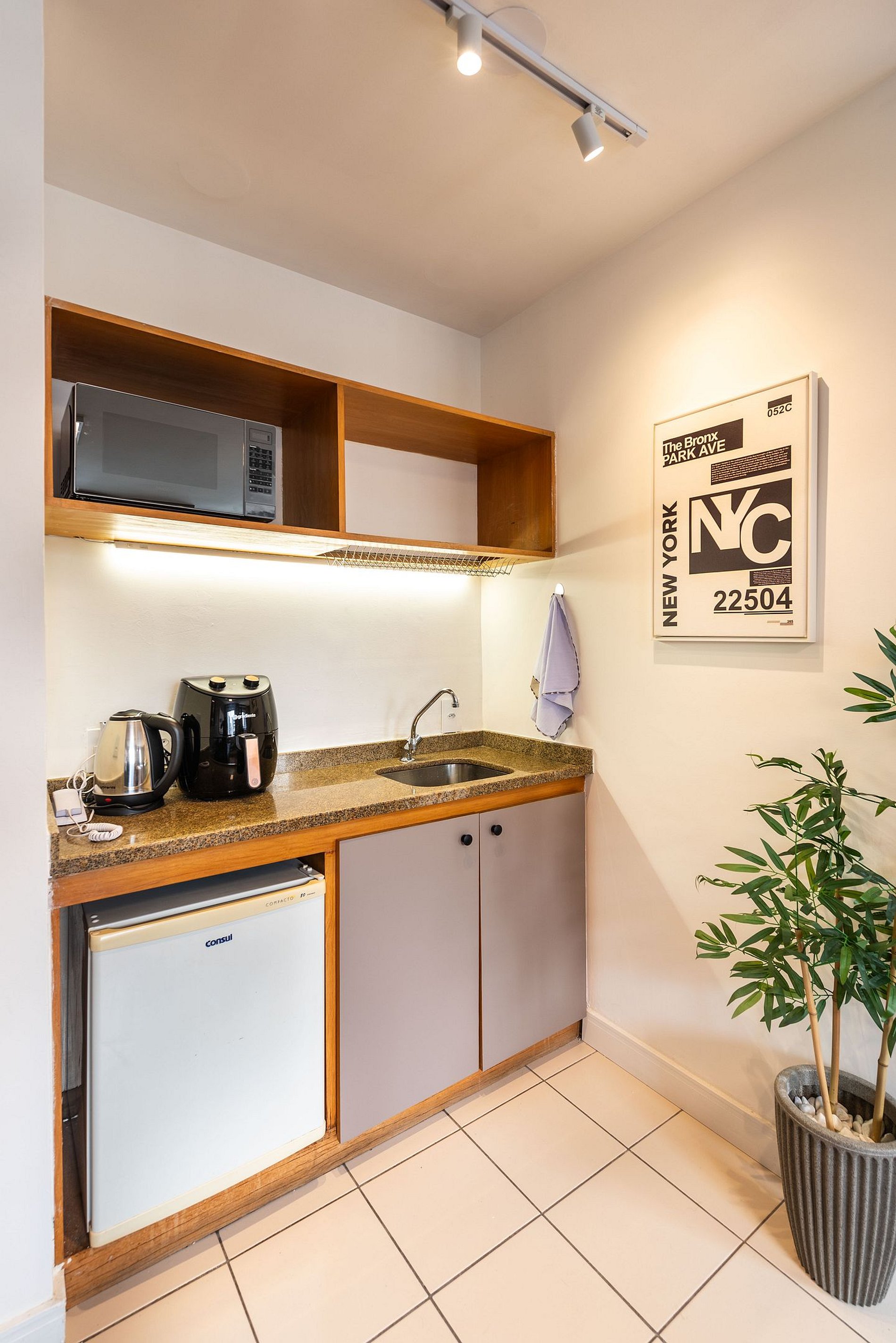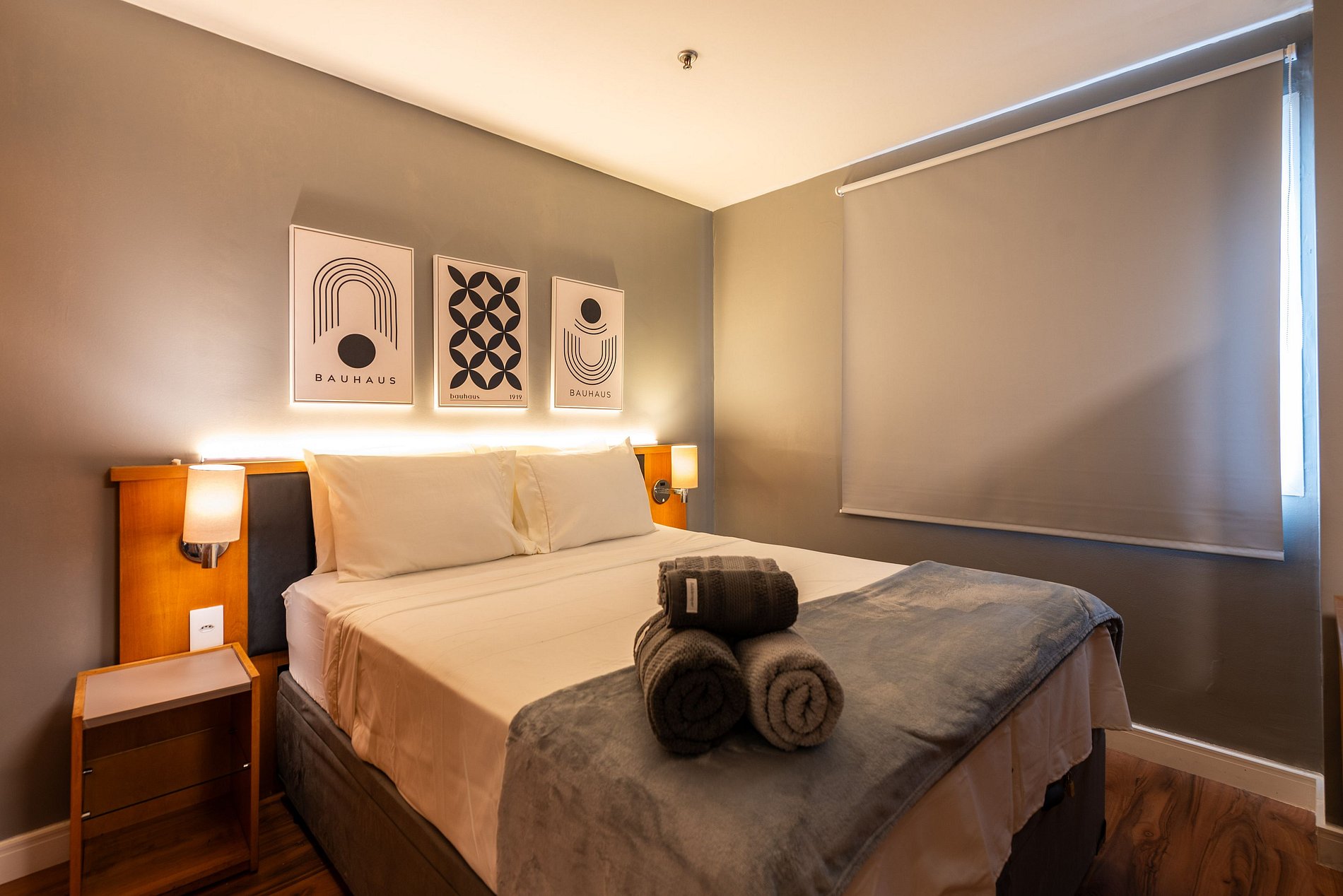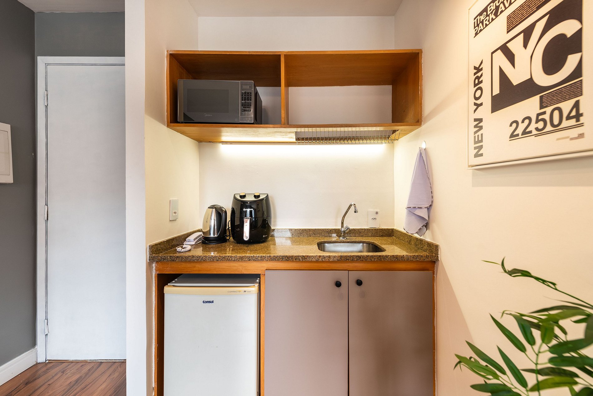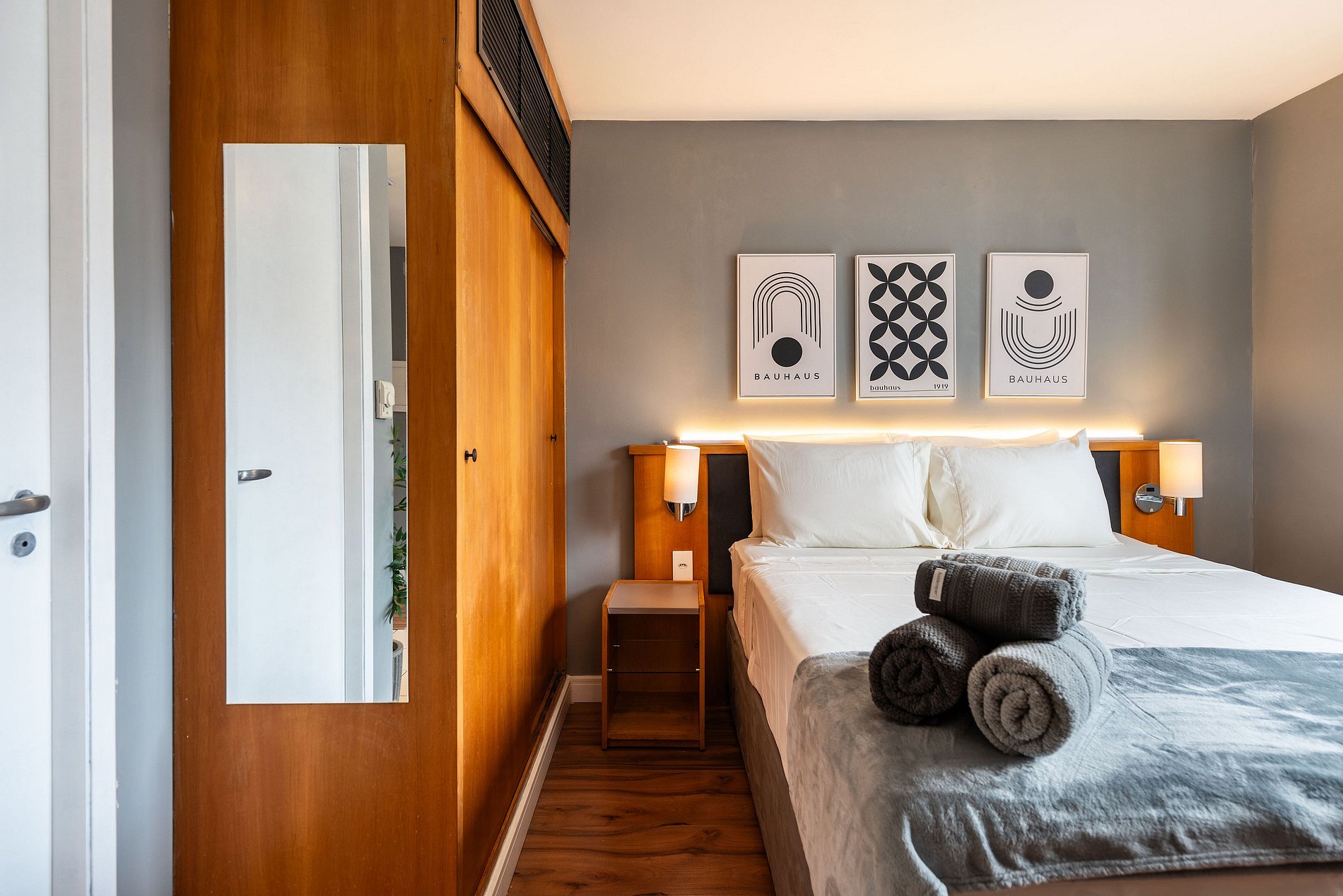 Este flat está localizado dentro de um Hotel 4 estrelas, com acesso a toda a estrutura do hotel: recepção e segurança 24h, limpeza diária gratuita, restaurante, bar, academia equipada, piscina, sauna, estacionamento com manobrista, sala de reuniões e lavanderia com entrega no mesmo dia. O apartamento foi inteiramente reformado e combina estilo contemporâneo com funcionalidade. Conta com uma cama de casal com enxoval premium, sofá, ar-condicionado potente, internet de alta velocidade, cortinas blackout, TV smart de tela grande e espaço para home office ou refeições. A cozinha compacta é equipada com micro-ondas, frigobar, air fryer, chaleira elétrica, liquidificador e utensílios básicos. O banheiro possui chuveiro a gás, água quente abundante, secador de cabelo e kit de amenities. Grandes janelas garantem uma vista privilegiada da Avenida Paulista. Ideal para curtas ou longas estadias, a trabalho ou lazer.