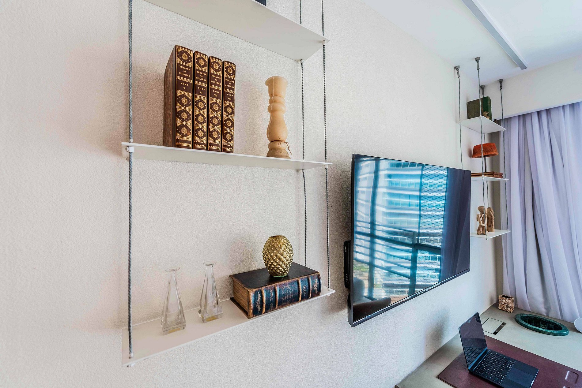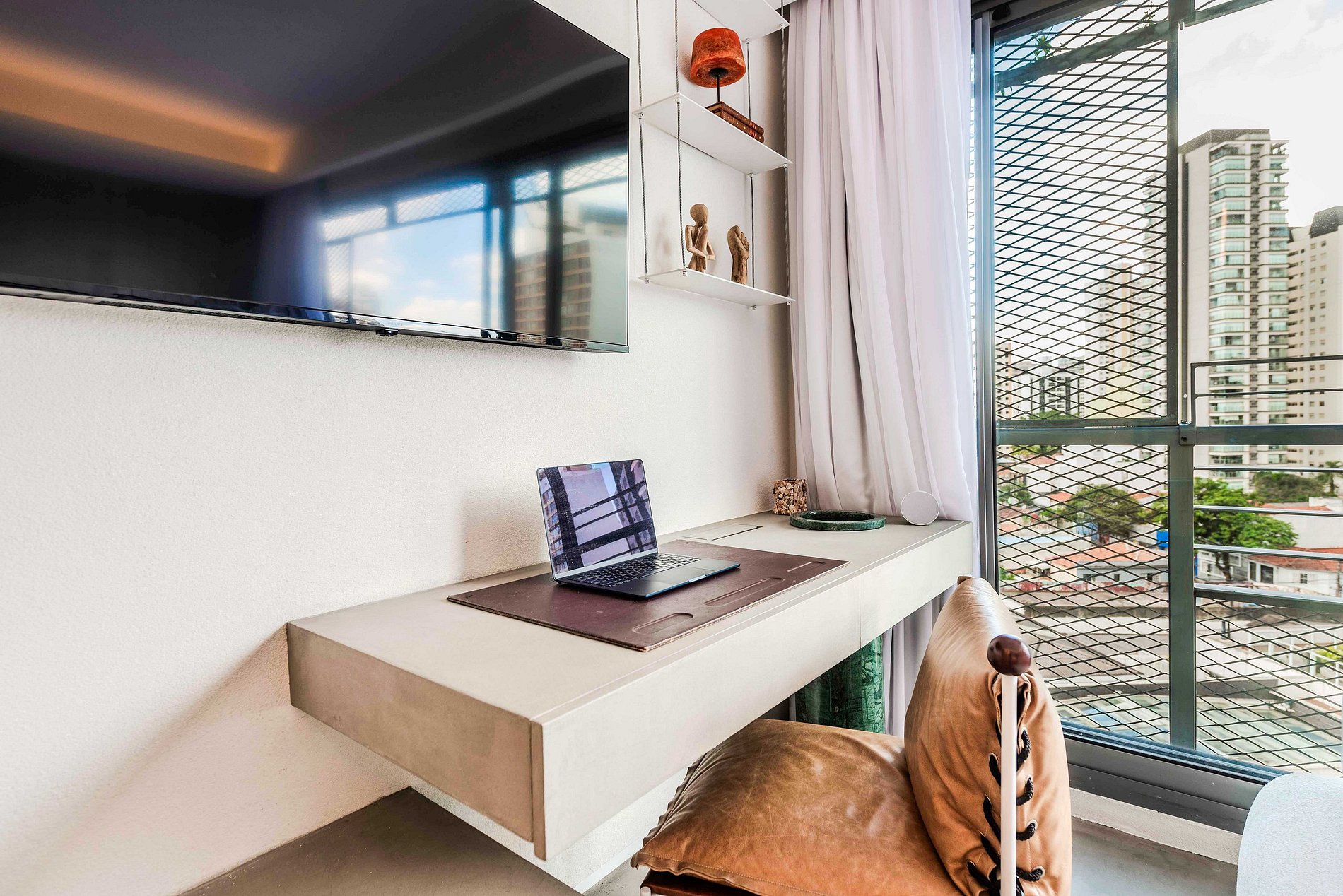 - Mesa de trabalho funcional, ideal para home office.