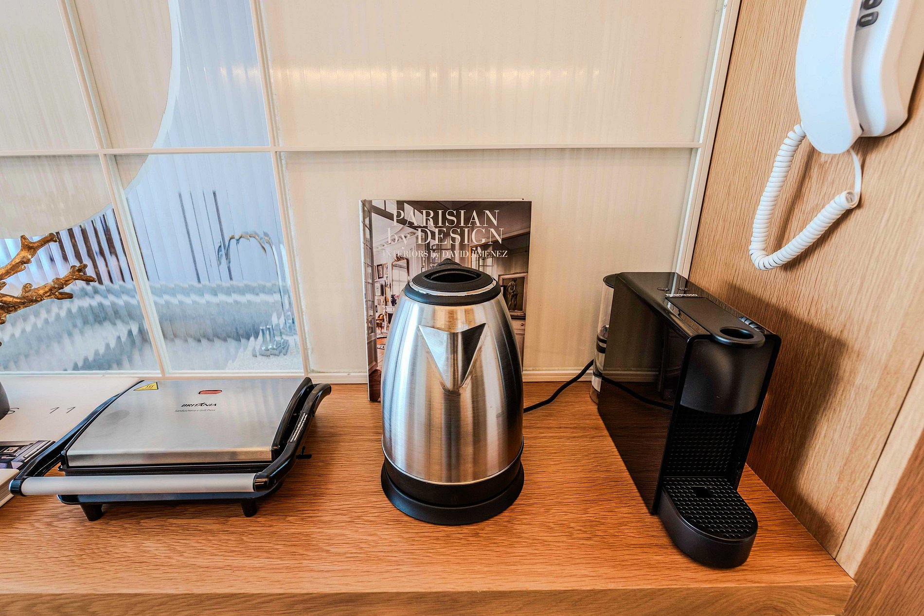 - Micro-ondas, cafeteira, liquidificador e sanduicheira.