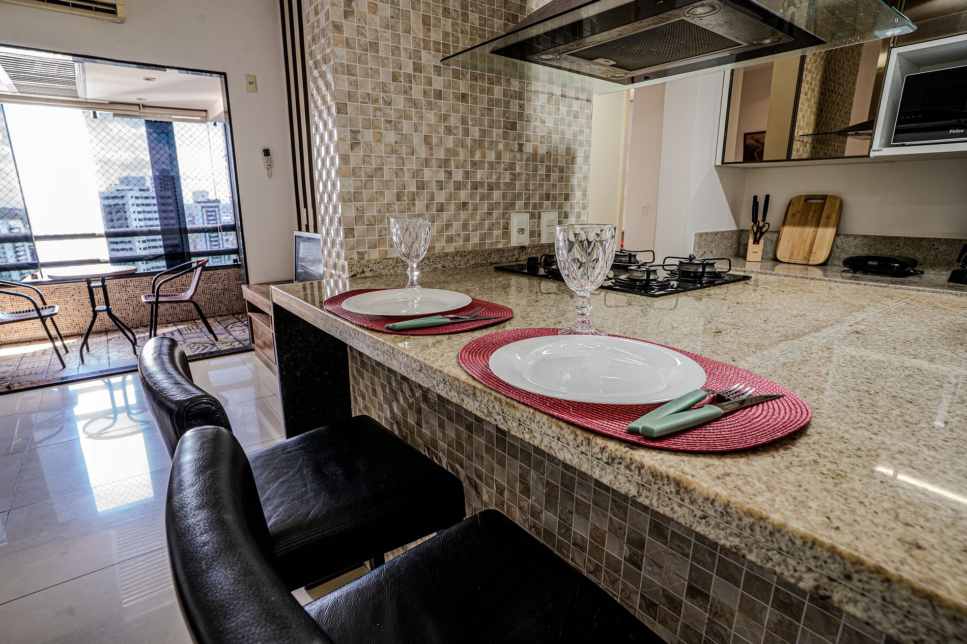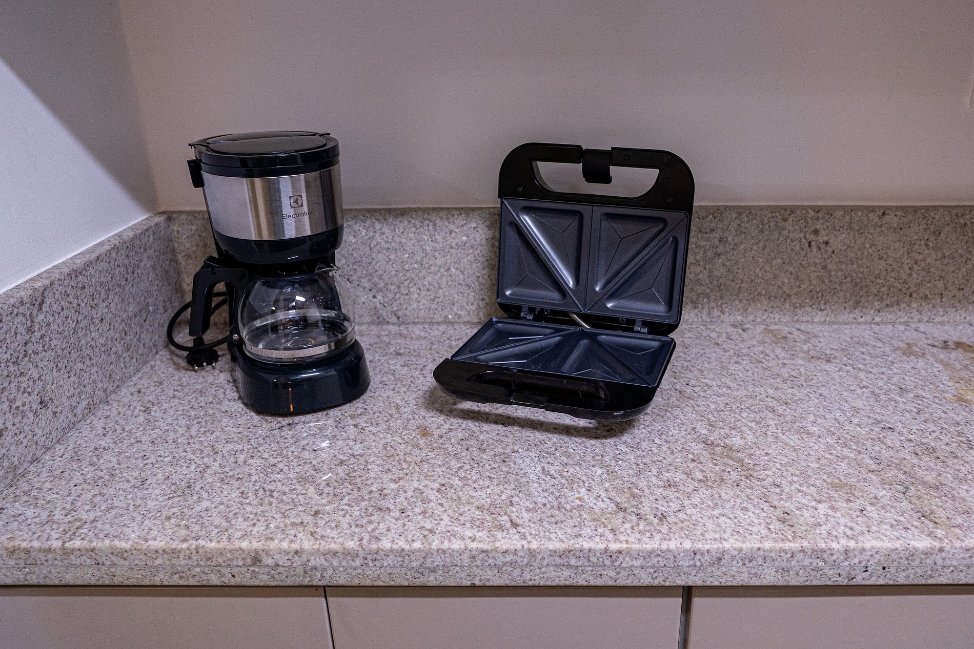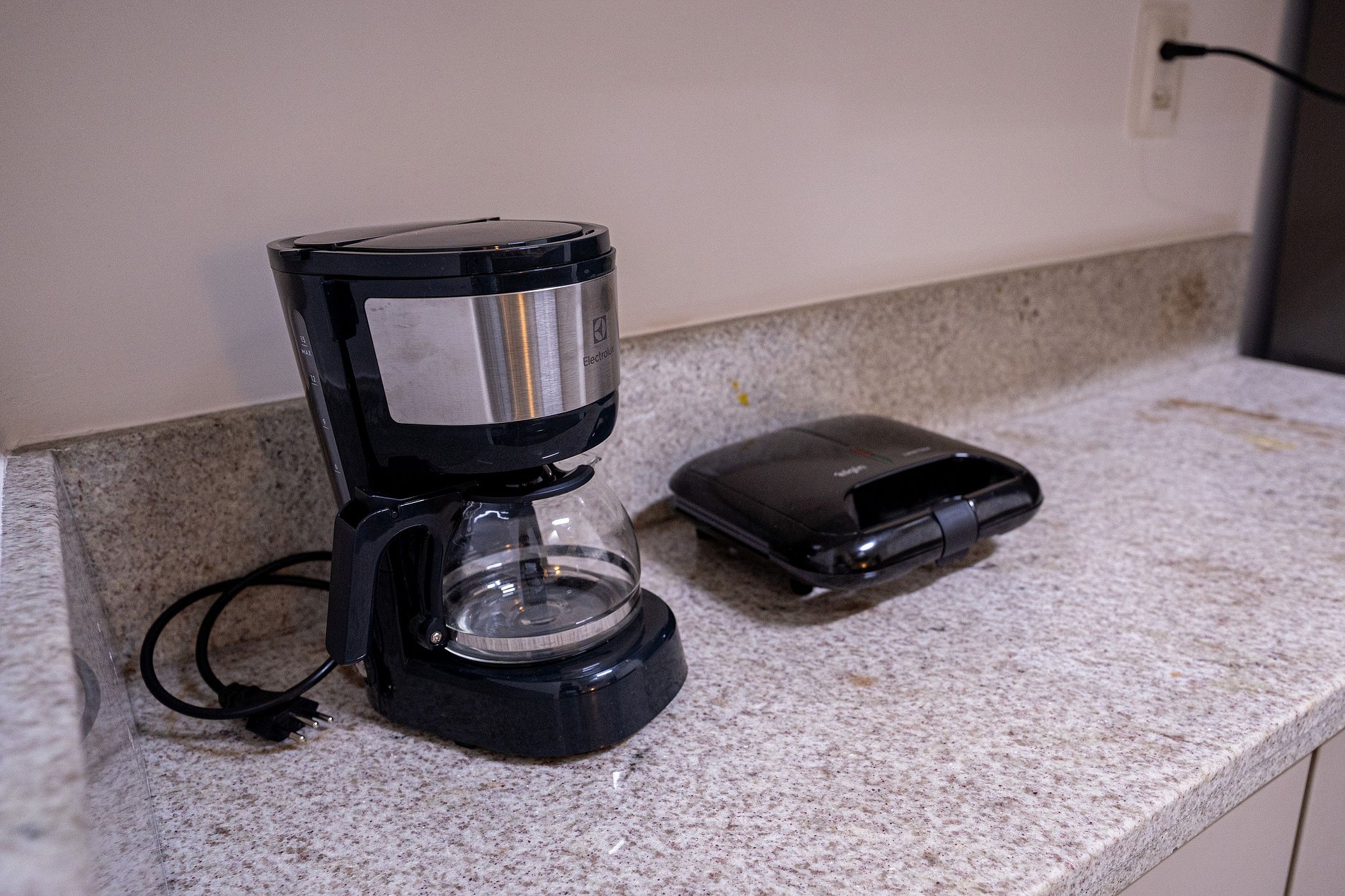 O apartamento foi pensado para proporcionar praticidade e aconchego. A sala integra uma varanda envidraçada com vista urbana, além de um sofá confortável ,TV e ventilador de teto.. A cozinha americana tem bancada com duas banquetas e está equipada com geladeira duplex, micro-ondas, forno, fogão, cafeteira, sanduicheira e todos os utensílios para cozinhar. A suíte principal possui cama king-size com cabeceira de madeira, ar-condicionado e banheiro completo. O segundo quarto tem duas camas de solteiro e mesa de apoio, ideal também para quem viaja a trabalho. Há ainda um segundo banheiro e internet de alta velocidade. O apartamento acomoda confortavelmente até 4 adultos.