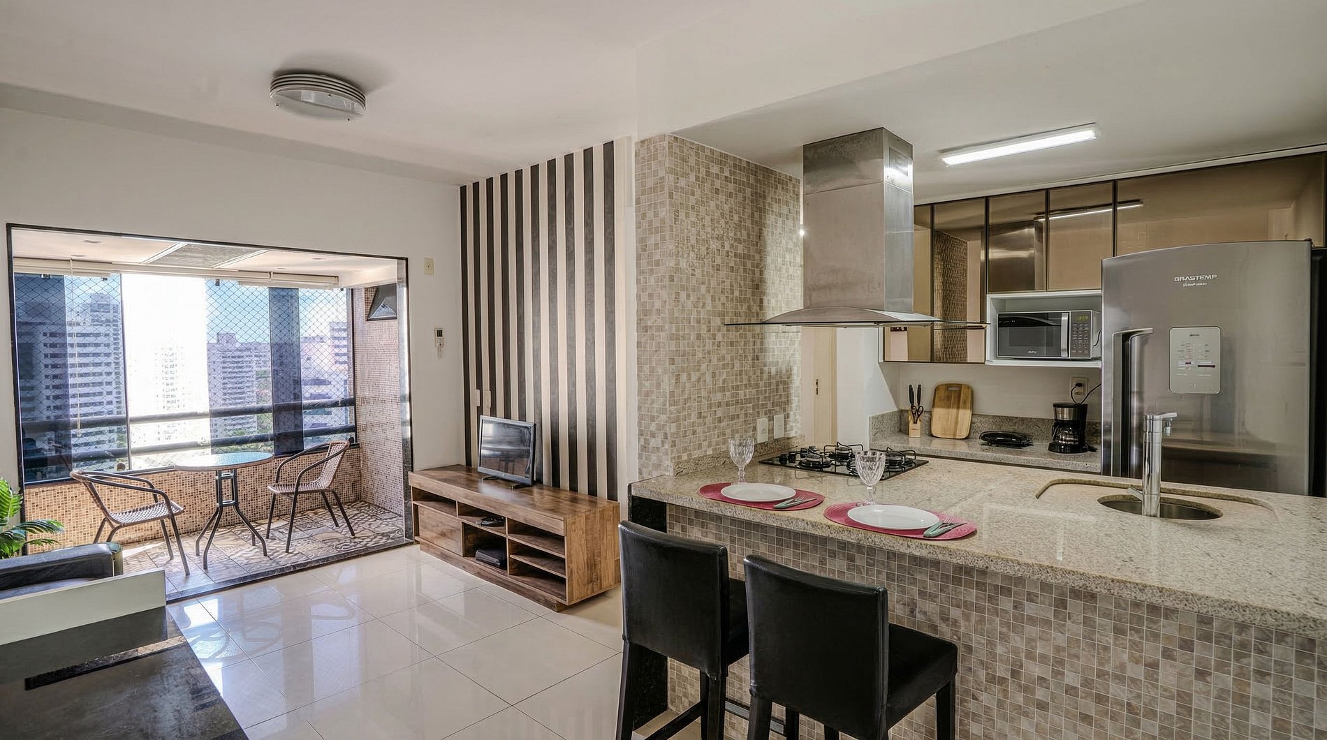 A poucos passos da praia de Boa Viagem, este flat oferece o equilíbrio ideal entre conforto e localização. Equipado com cozinha completa, varanda com vista, cama king size, ar-condicionado, TV e internet rápida. Prédio com piscina, academia, sauna, quadra, espaço kids e limpeza diária.