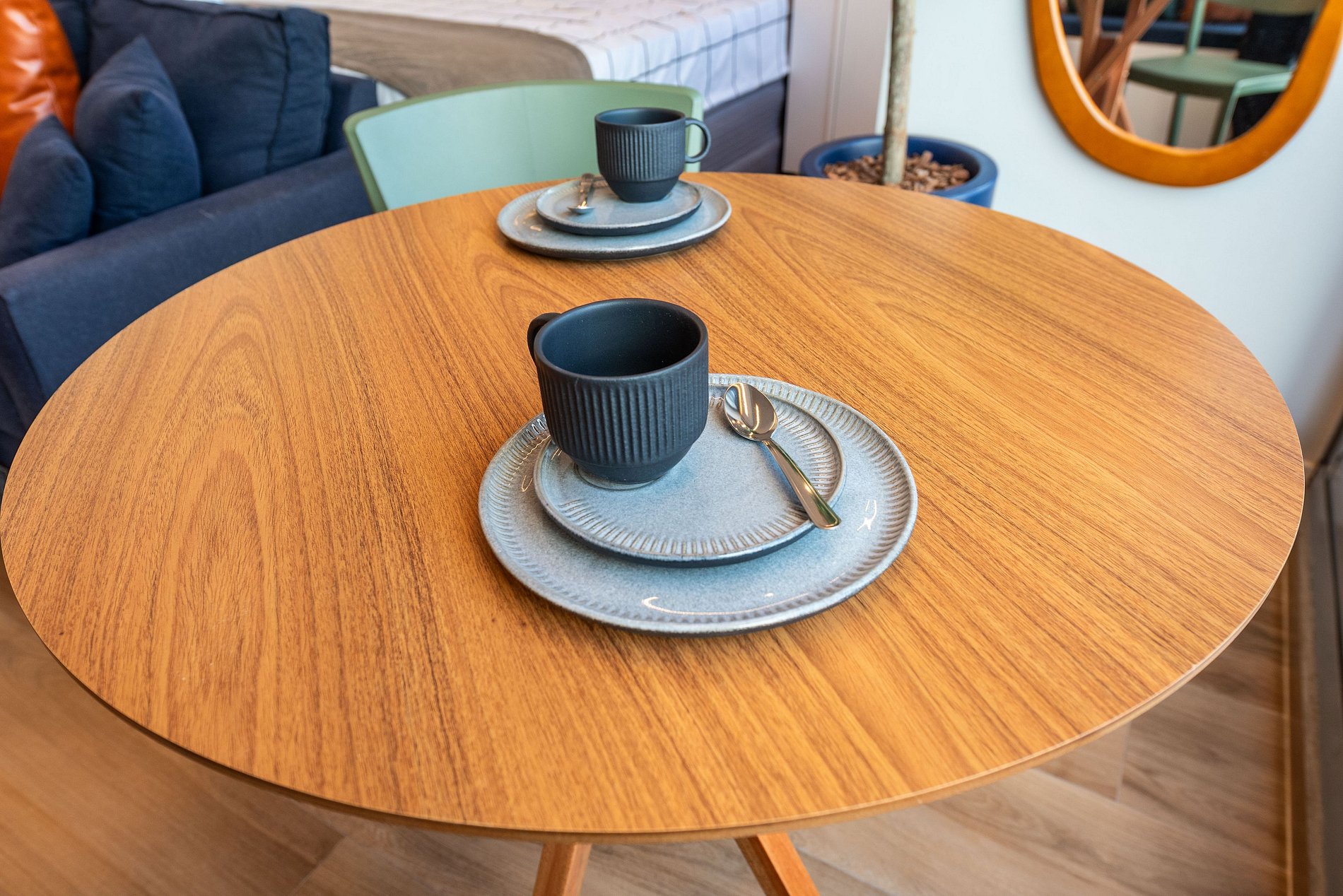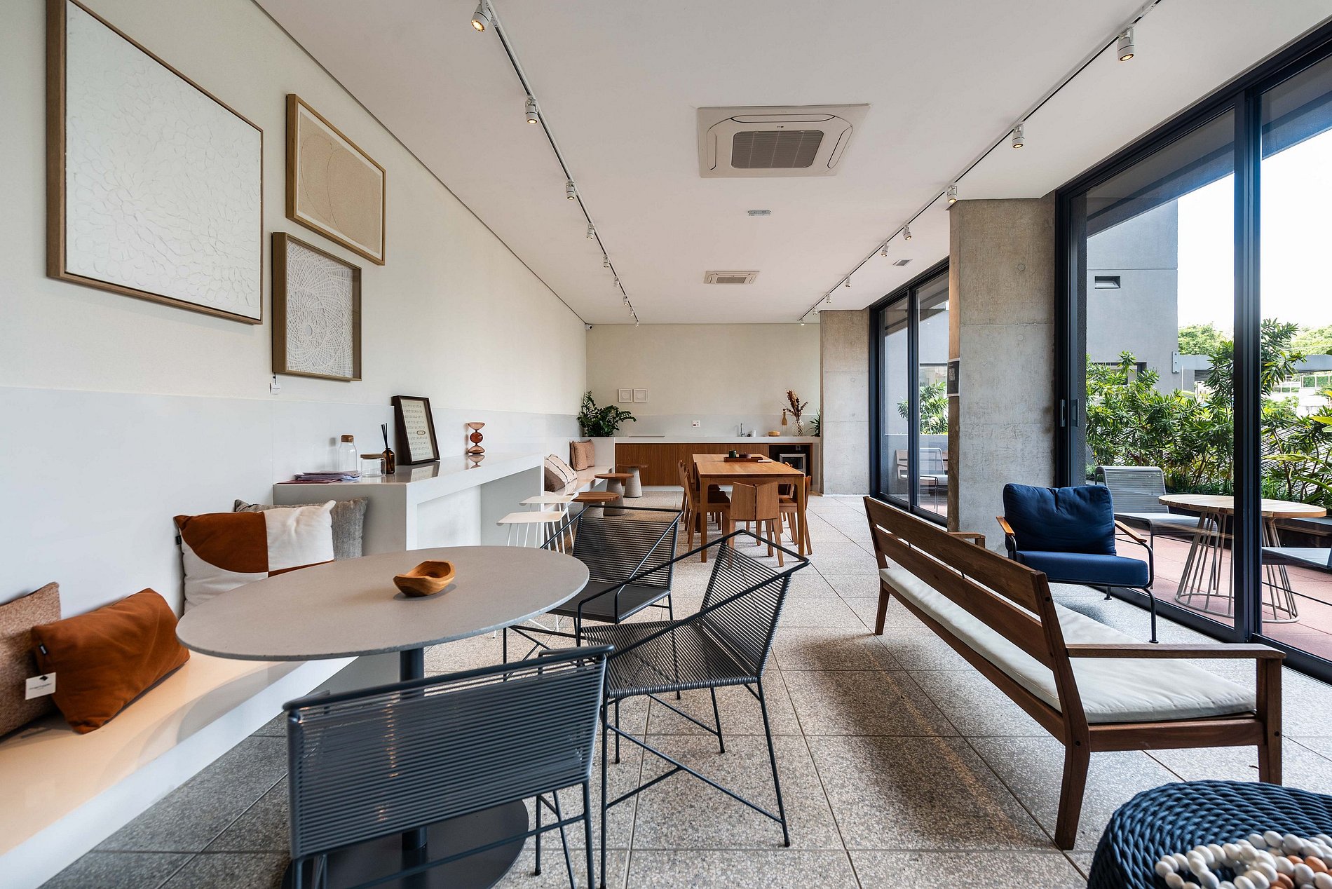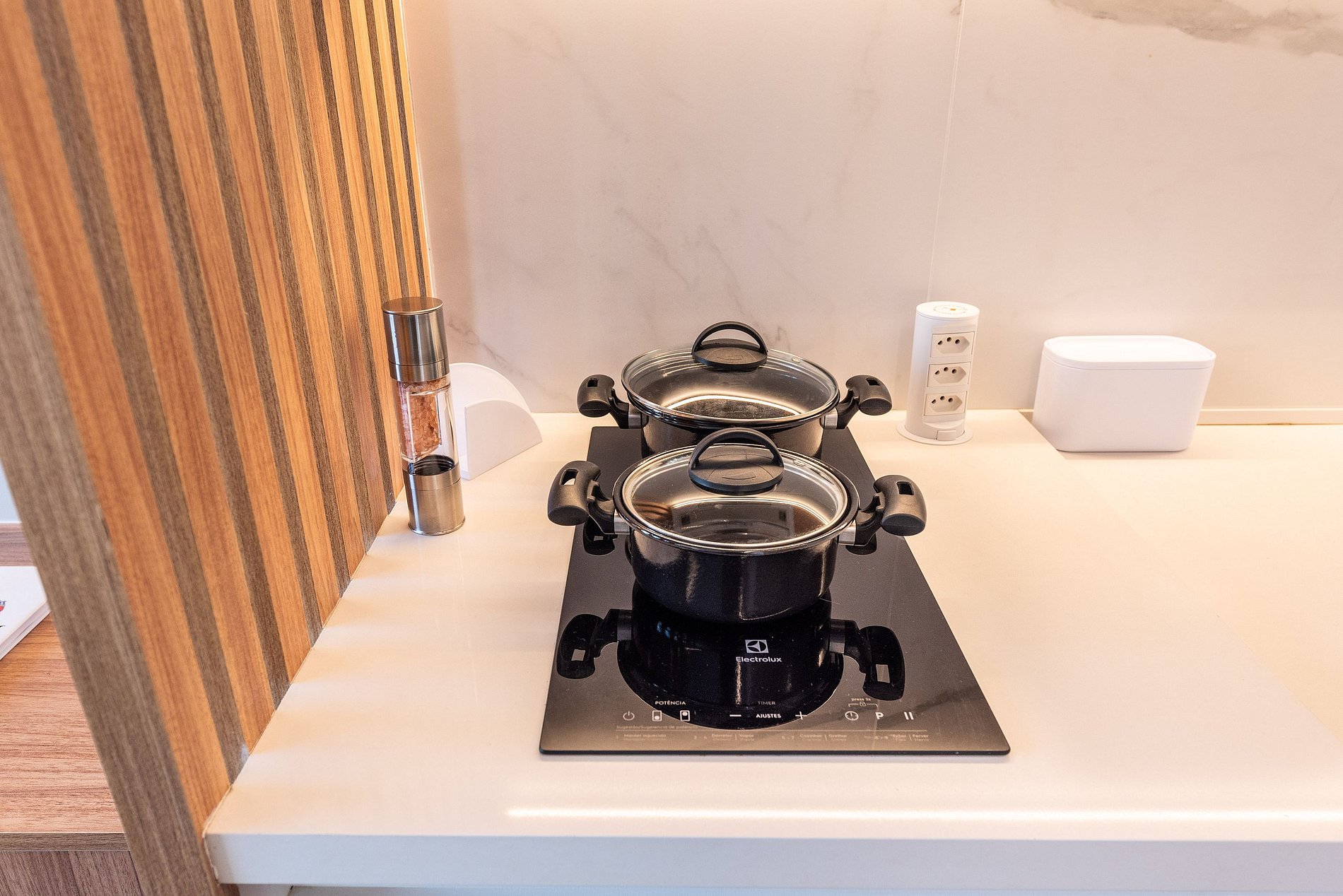 Há uma mesa de jantar com vista para a cidade, um sofá confortável para relaxar assistindo à Smart TV, e uma estação de trabalho ideal para home office. Cortinas blackout, ar-condicionado central e internet de alta velocidade garantem conforto absoluto. A fechadura eletrônica traz praticidade e segurança.