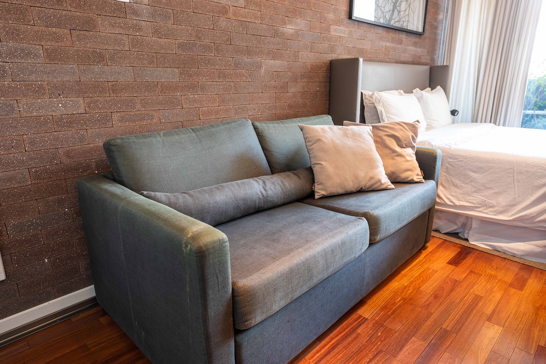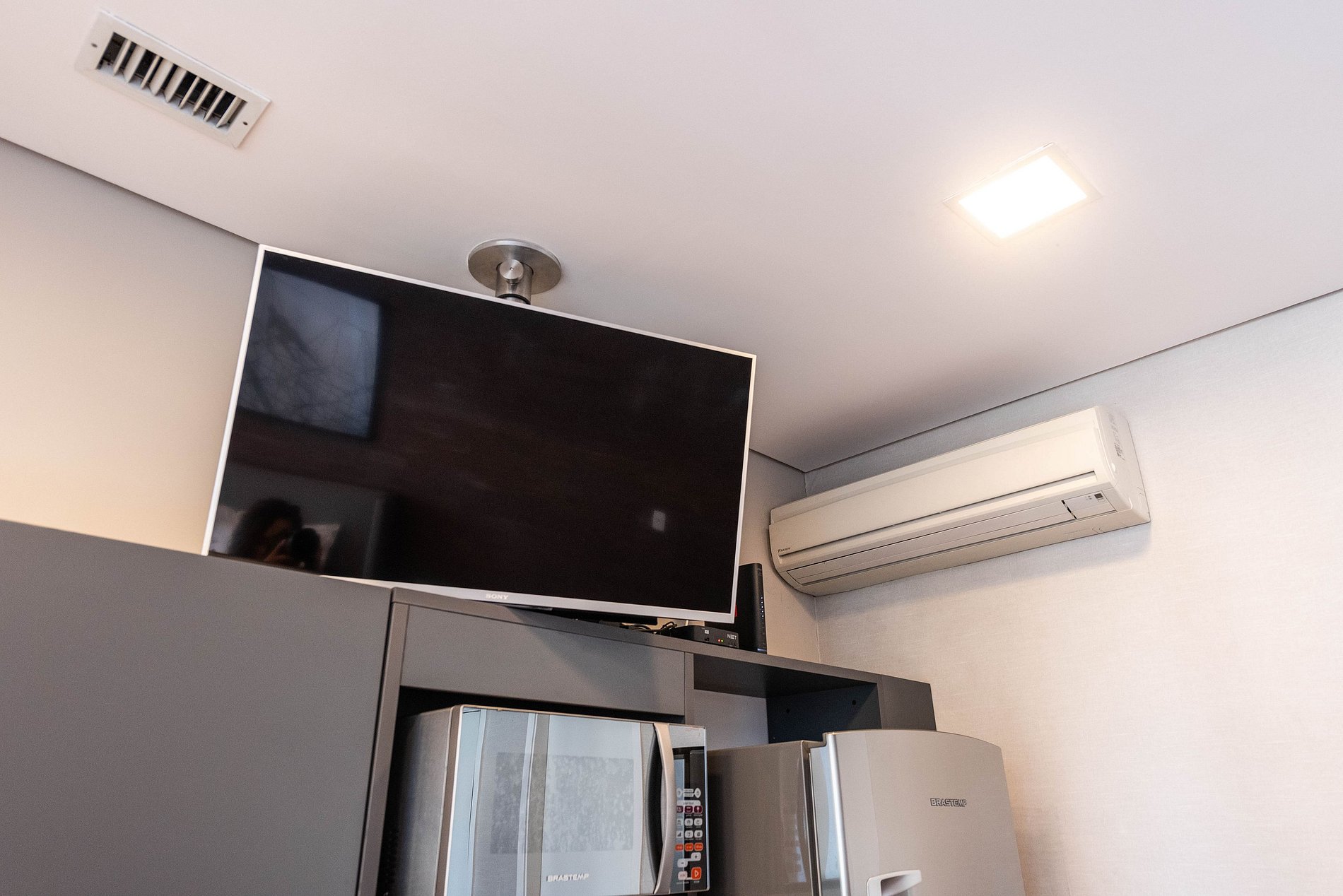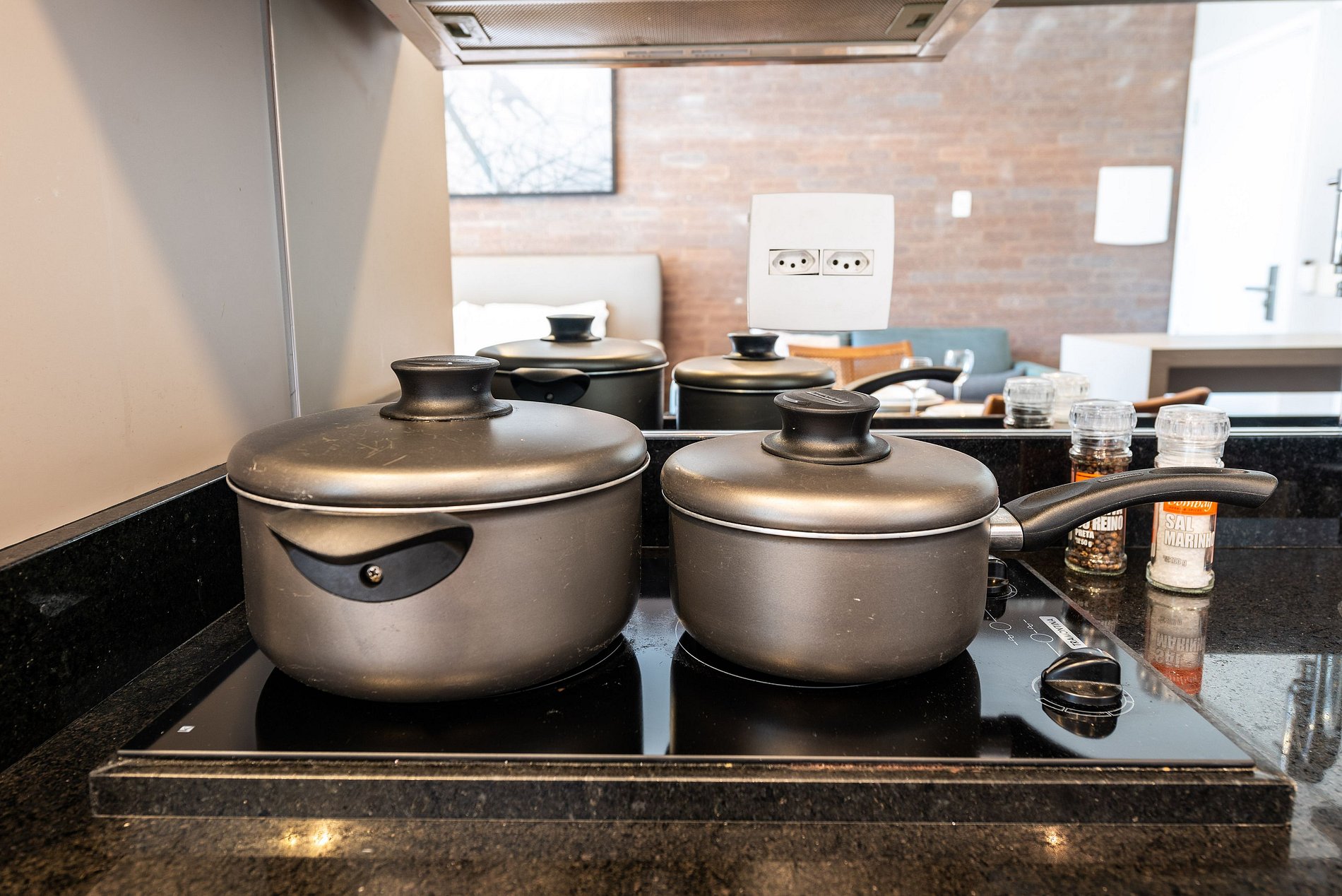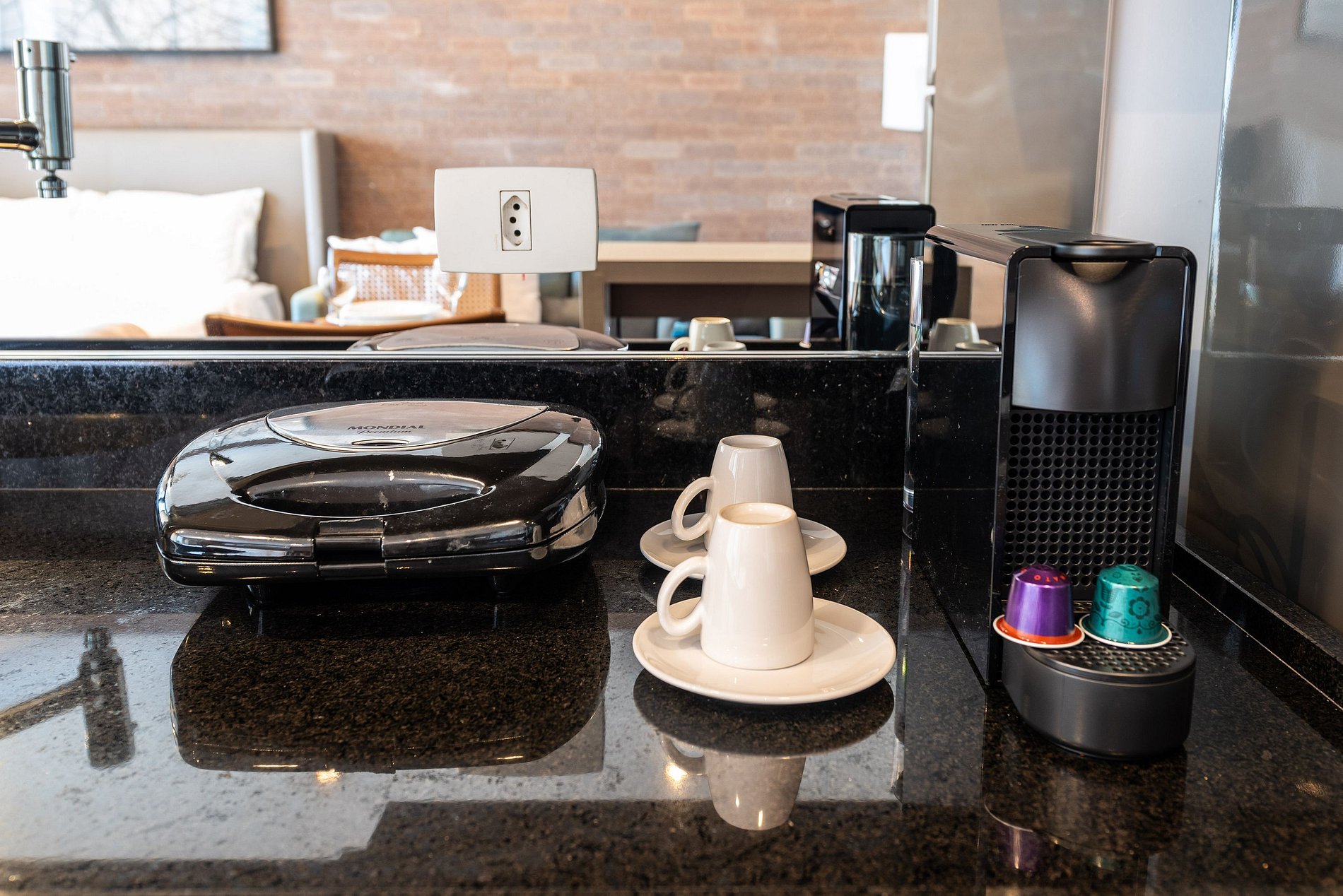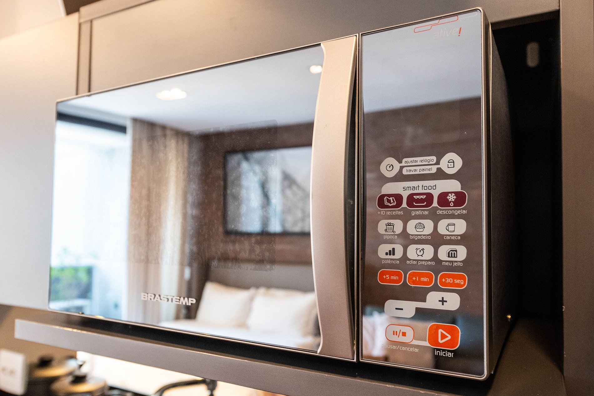 Este studio foi projetado para unir conforto, praticidade e sofisticação. Conta com cama queen size, enxoval de alto padrão, sofá aconchegante, mesa para refeições ou home office, Smart TV e ar-condicionado. A cozinha compacta está totalmente equipada com micro-ondas, cooktop, frigobar, cafeteira e utensílios completos. A varanda privativa garante uma vista incrível para os prédios da Vila Olímpia, trazendo luz natural e charme ao ambiente. O banheiro moderno oferece chuveiro a gás, secador de cabelo e amenidades de qualidade.