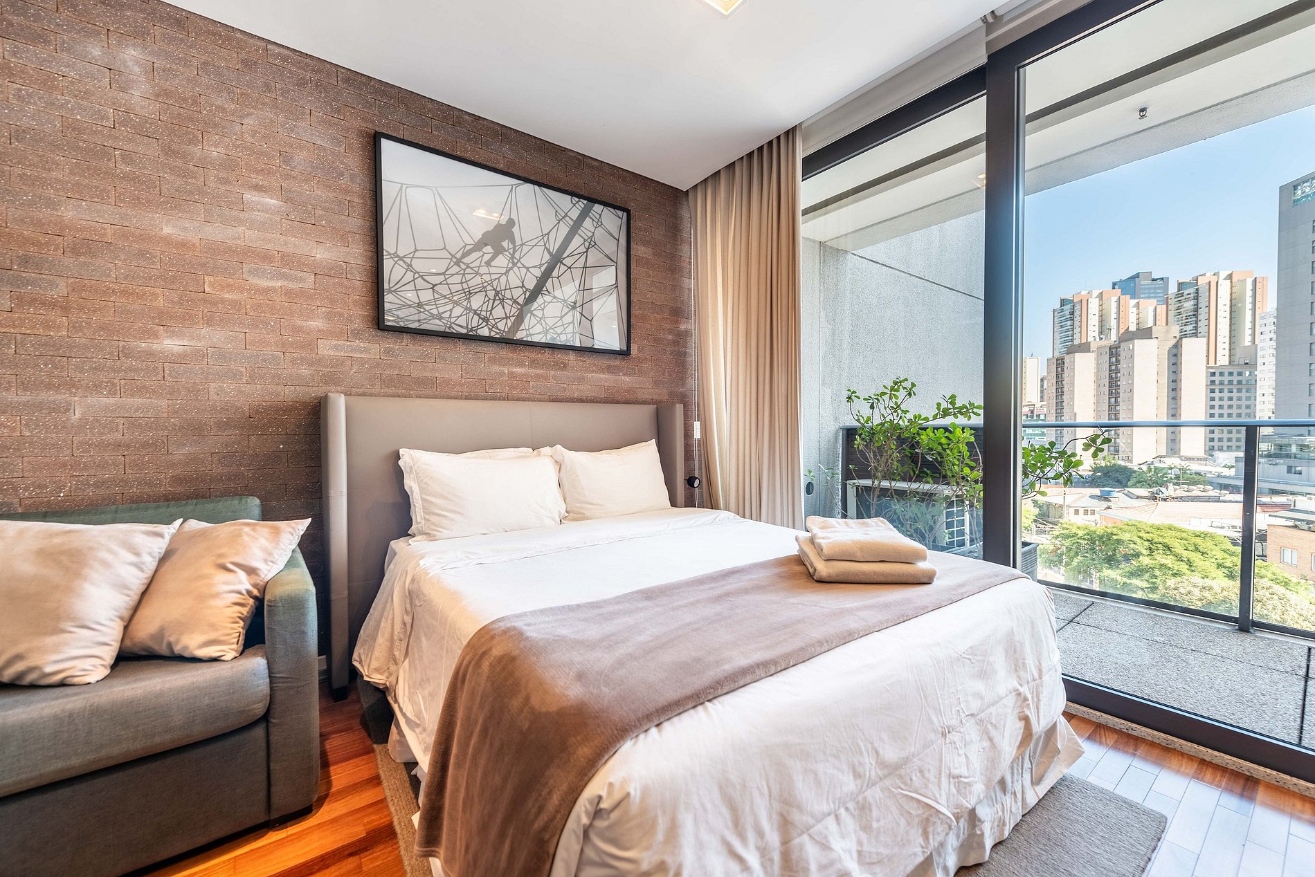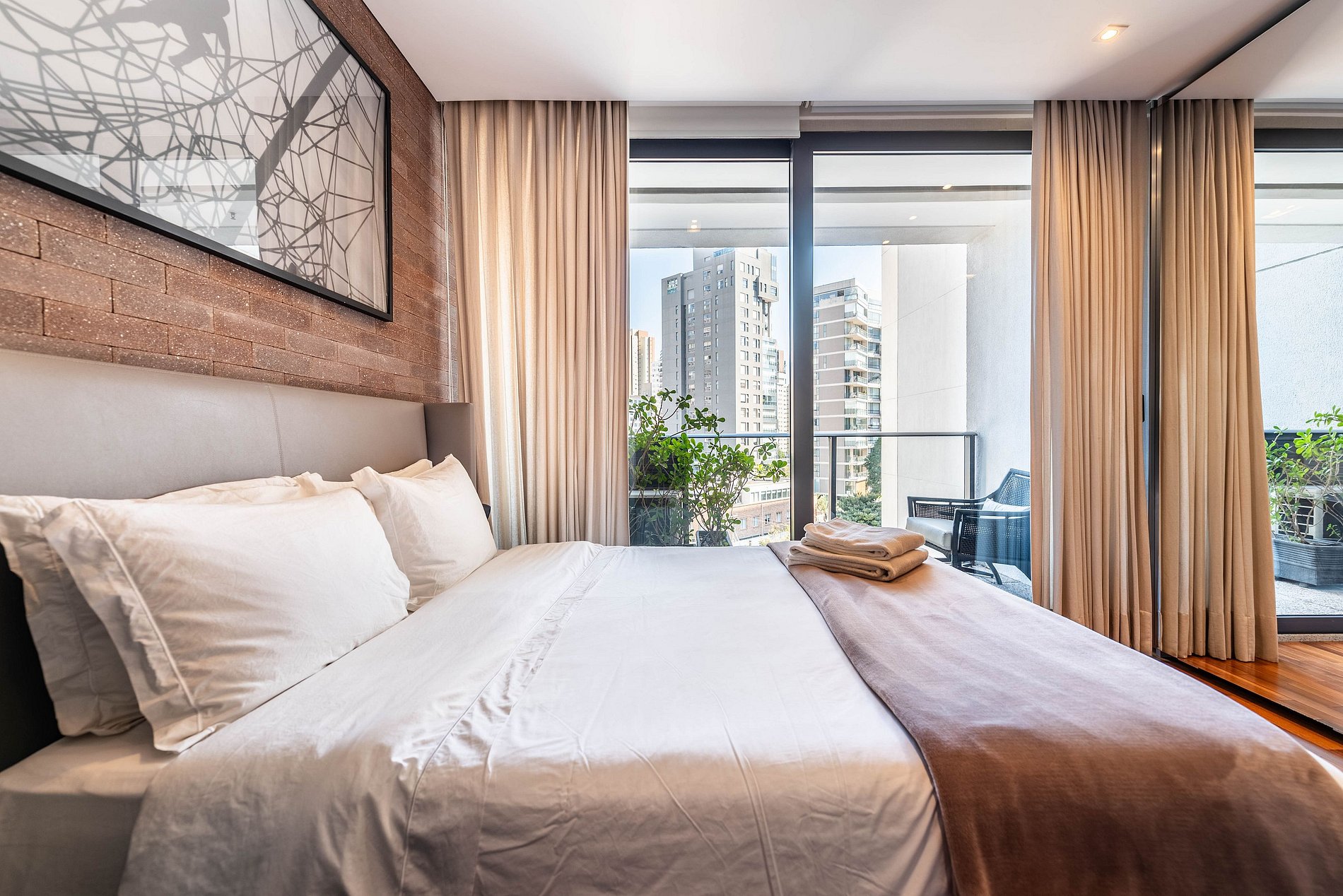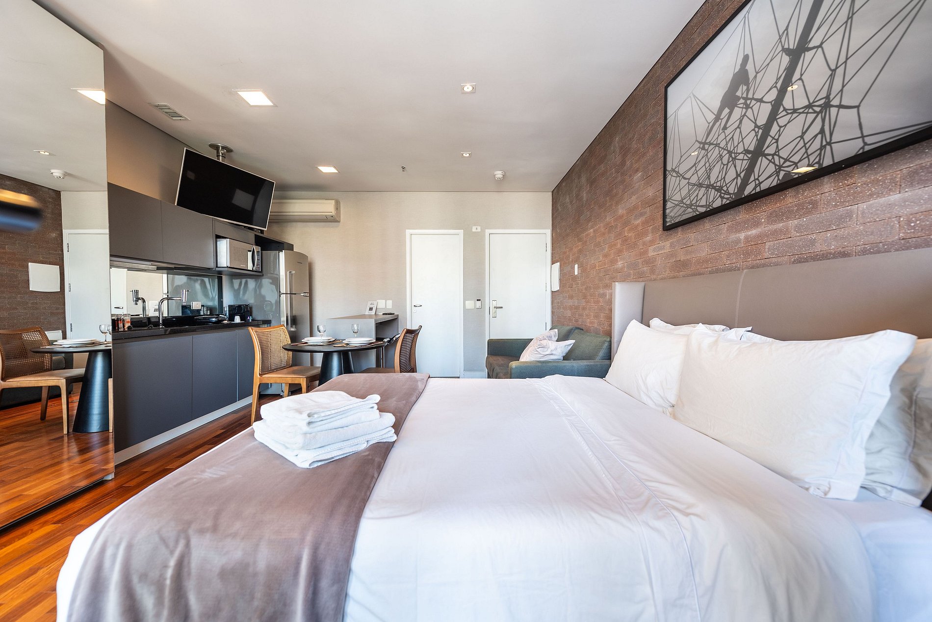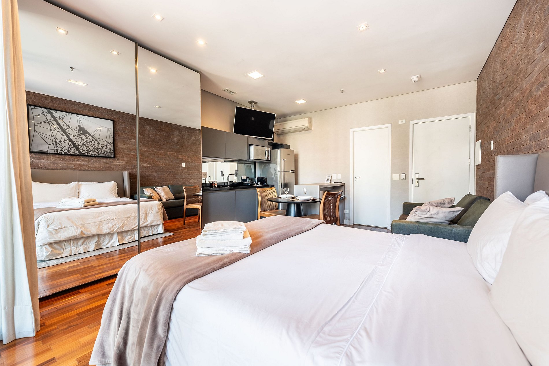 Aproveite a experiência de se hospedar em um studio moderno e sofisticado na Vila Olímpia. Cama queen size, varanda com vista para a cidade, cozinha completa e enxoval premium. No prédio, desfrute de piscina na cobertura, academia panorâmica, sauna, restaurante, mercado, lavanderia pay-per-use, vaga com carregador para carro elétrico e recepção 24h. Conforto e praticidade no coração de São Paulo!