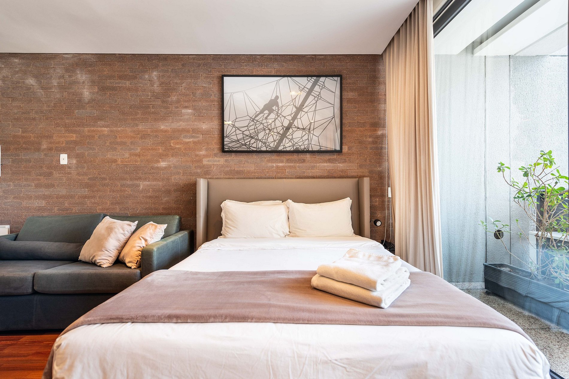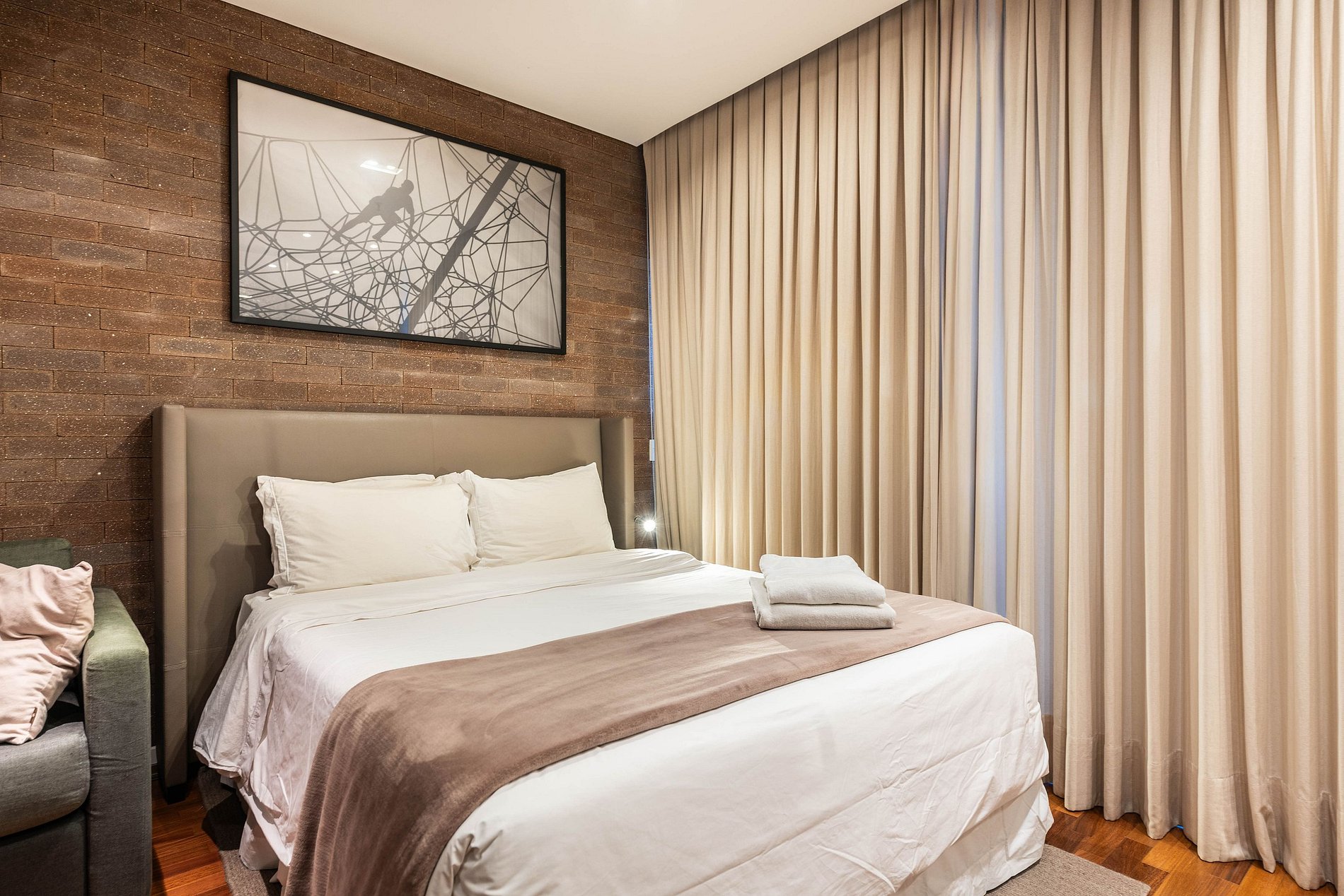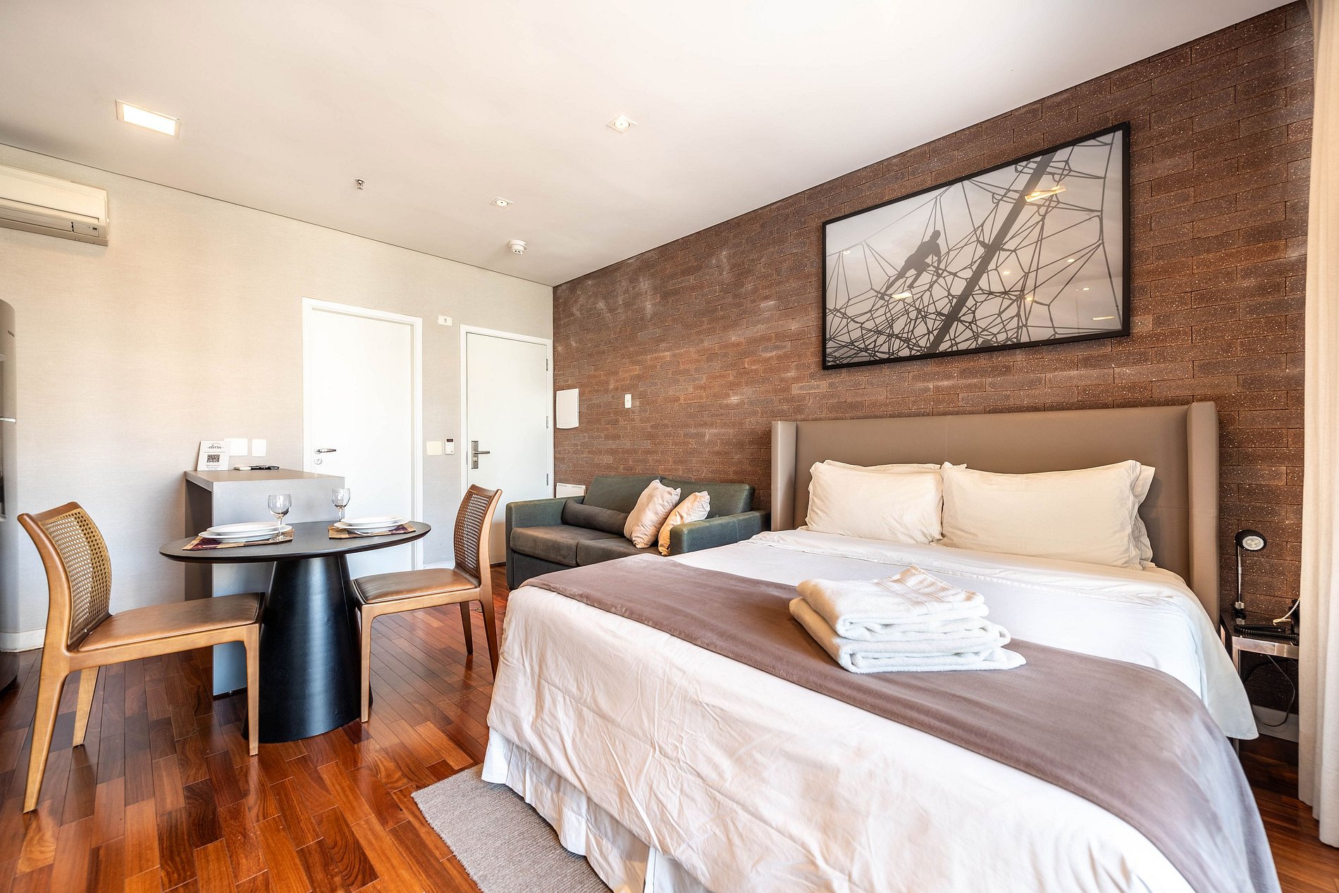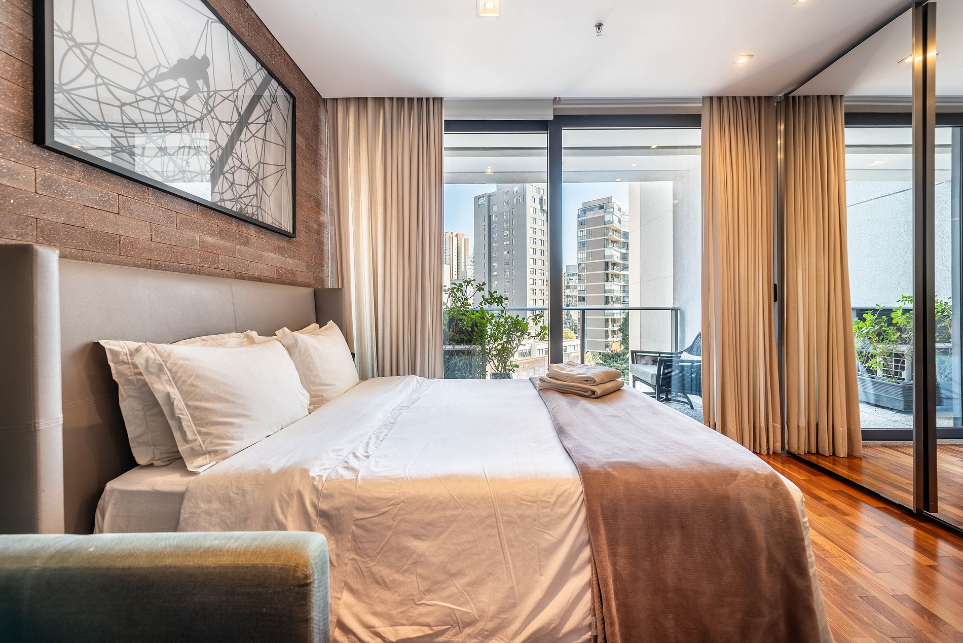 Aproveite a experiência de se hospedar em um studio moderno e sofisticado na Vila Olímpia. Cama queen size, varanda com vista para a cidade, cozinha completa e enxoval premium. No prédio, desfrute de piscina na cobertura, academia panorâmica, sauna, restaurante, mercado, lavanderia pay-per-use, vaga com carregador para carro elétrico e recepção 24h. Conforto e praticidade no coração de São Paulo!