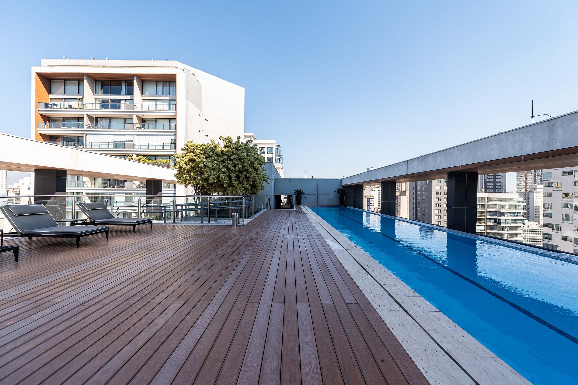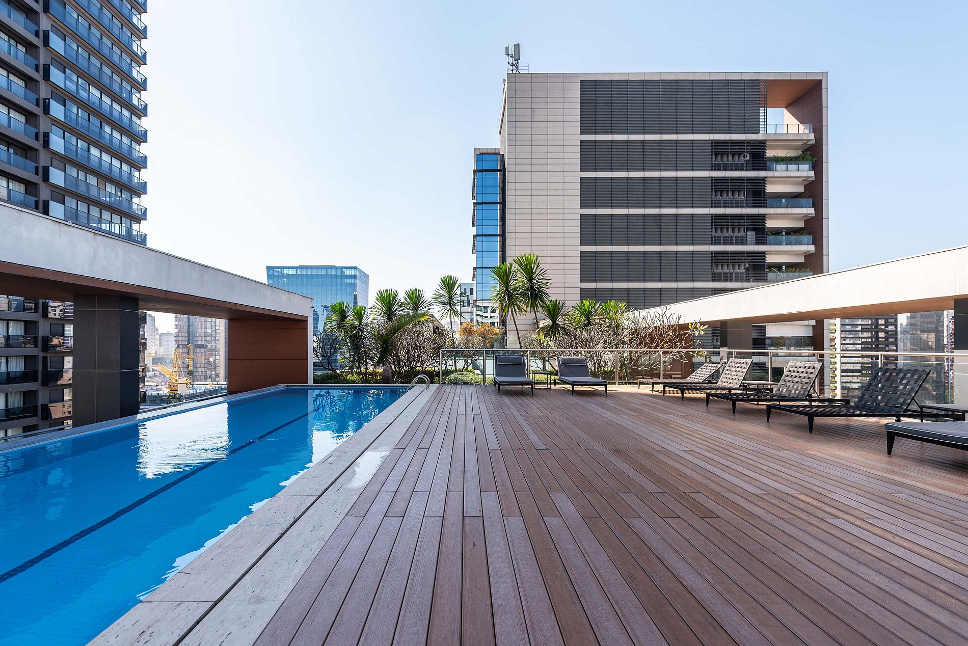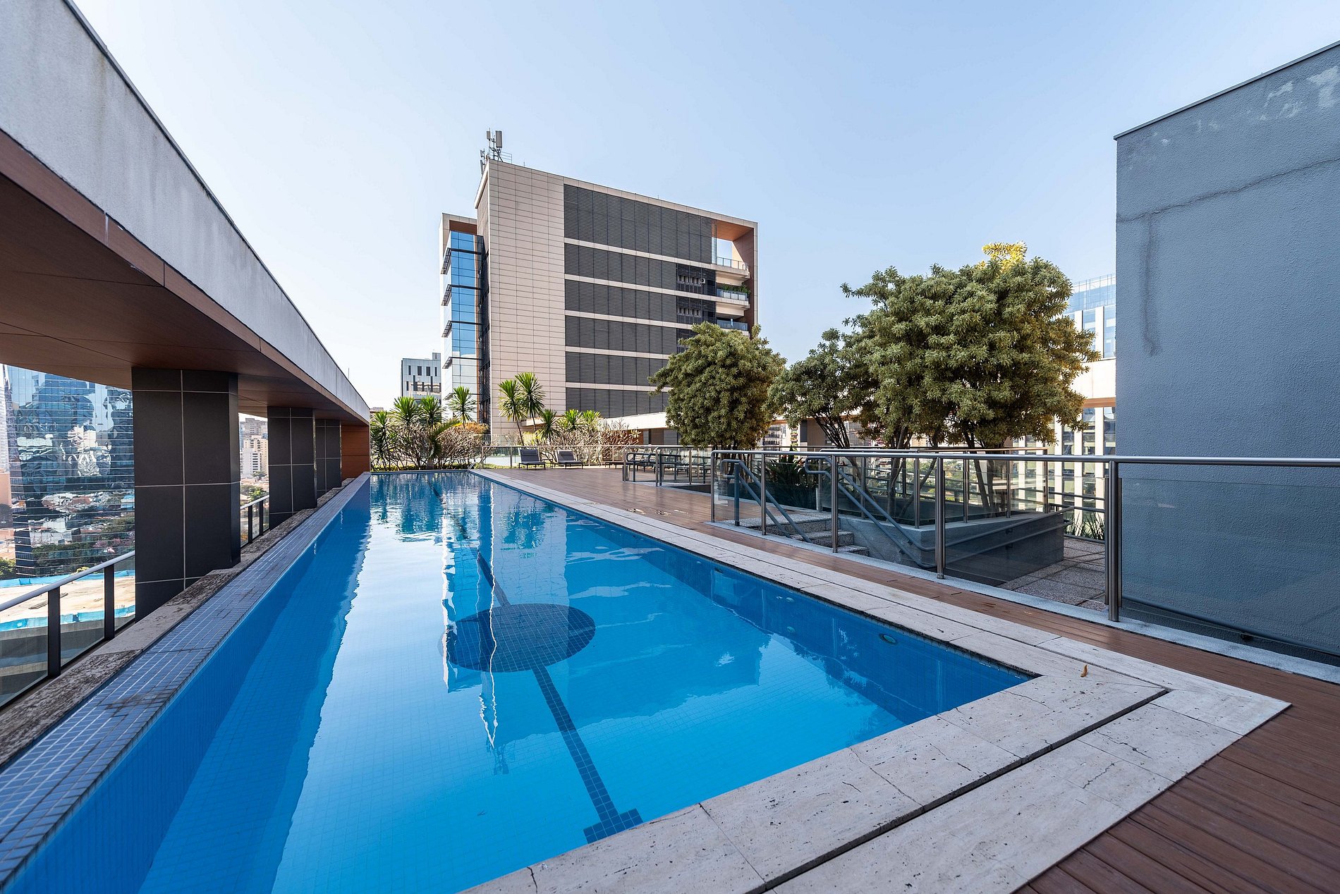 Localizado na Rua Elvira Ferraz, 250, na Vila Olímpia — um dos bairros mais nobres de São Paulo. Você estará a passos dos melhores restaurantes da cidade, incluindo o Elvira, dentro do próprio prédio. Próximo às avenidas Faria Lima e Juscelino Kubitschek, além dos shoppings JK Iguatemi e Vila Olímpia. A região combina alta gastronomia, centros comerciais de referência e opções culturais, tornando sua estadia ainda mais completa.