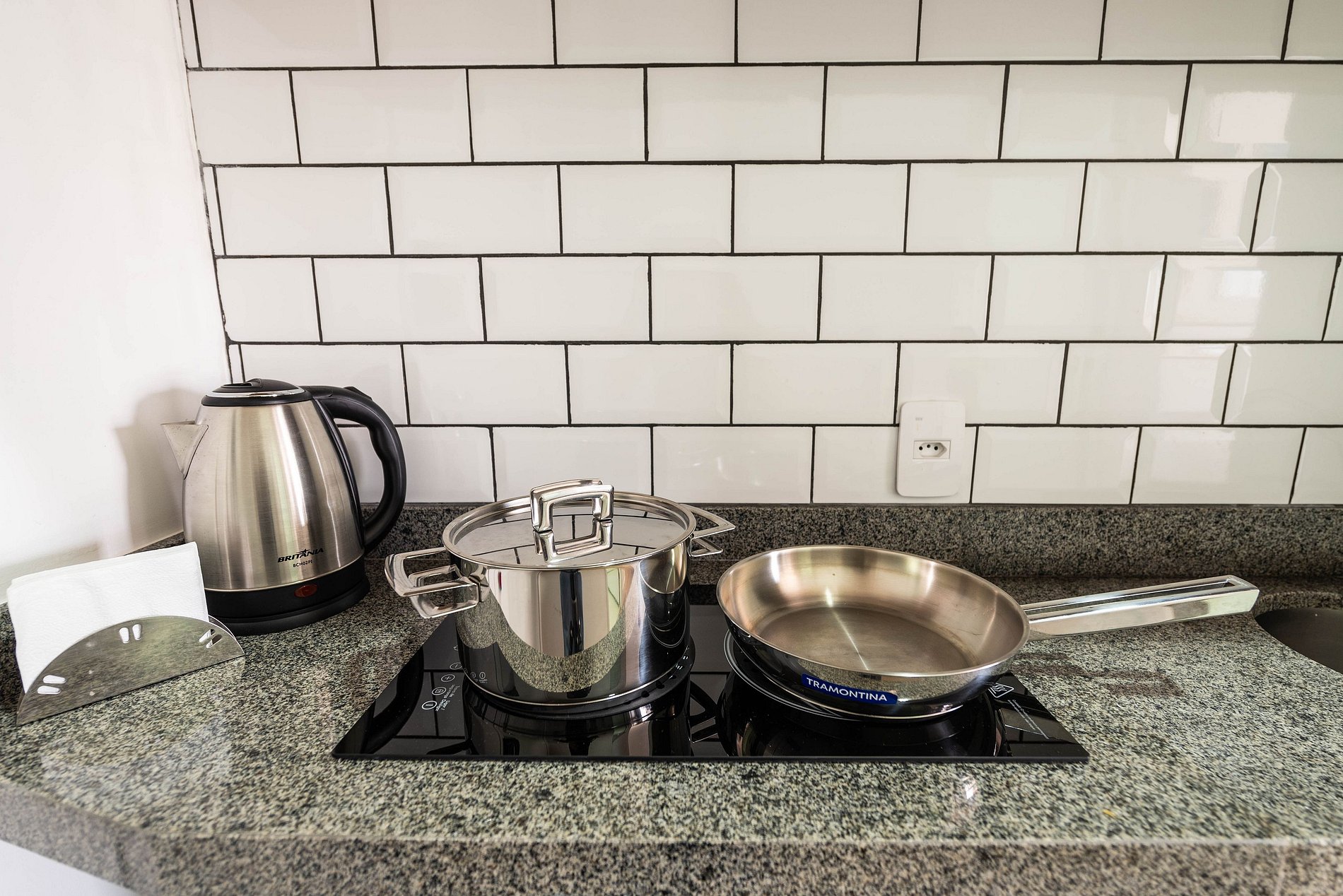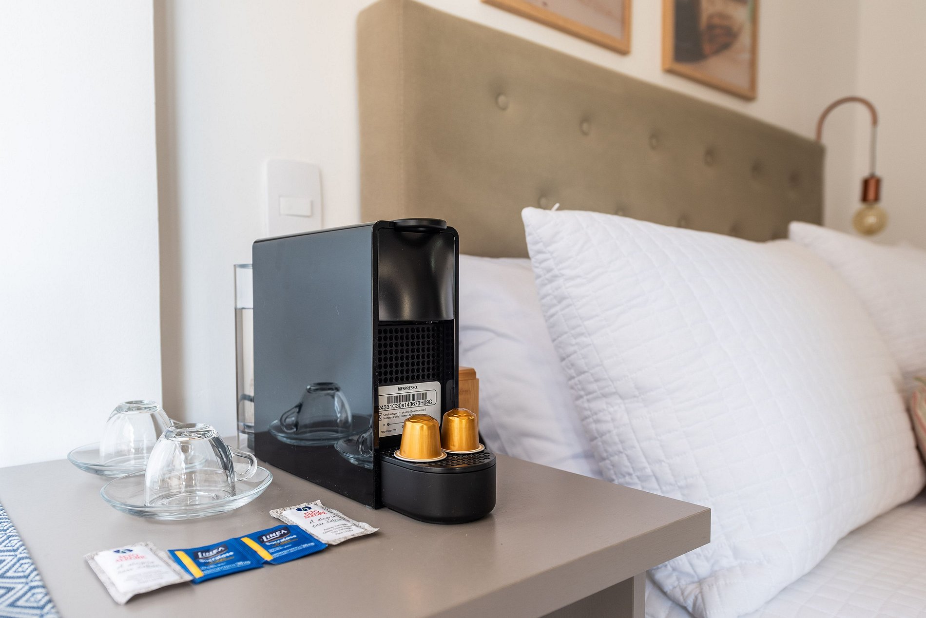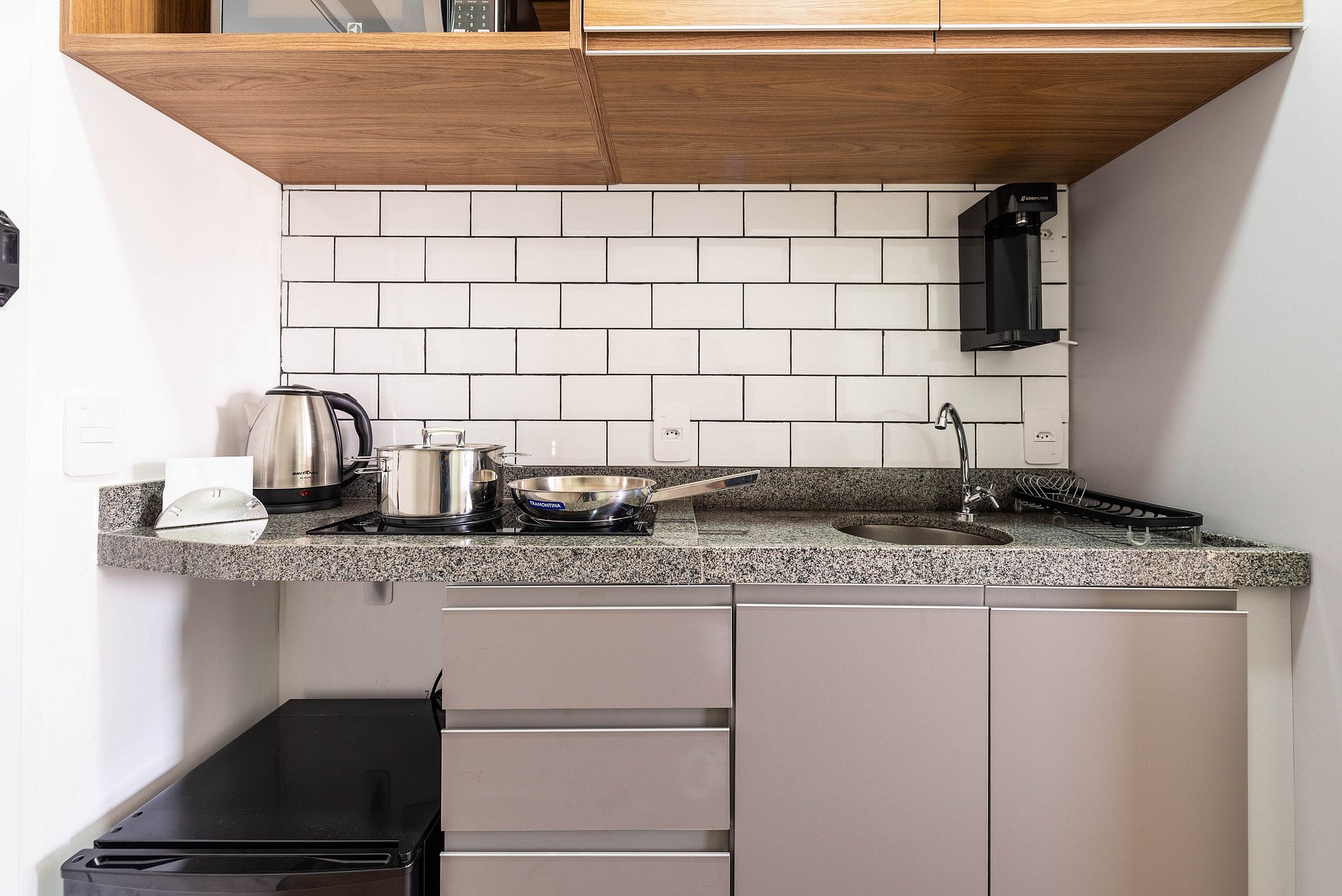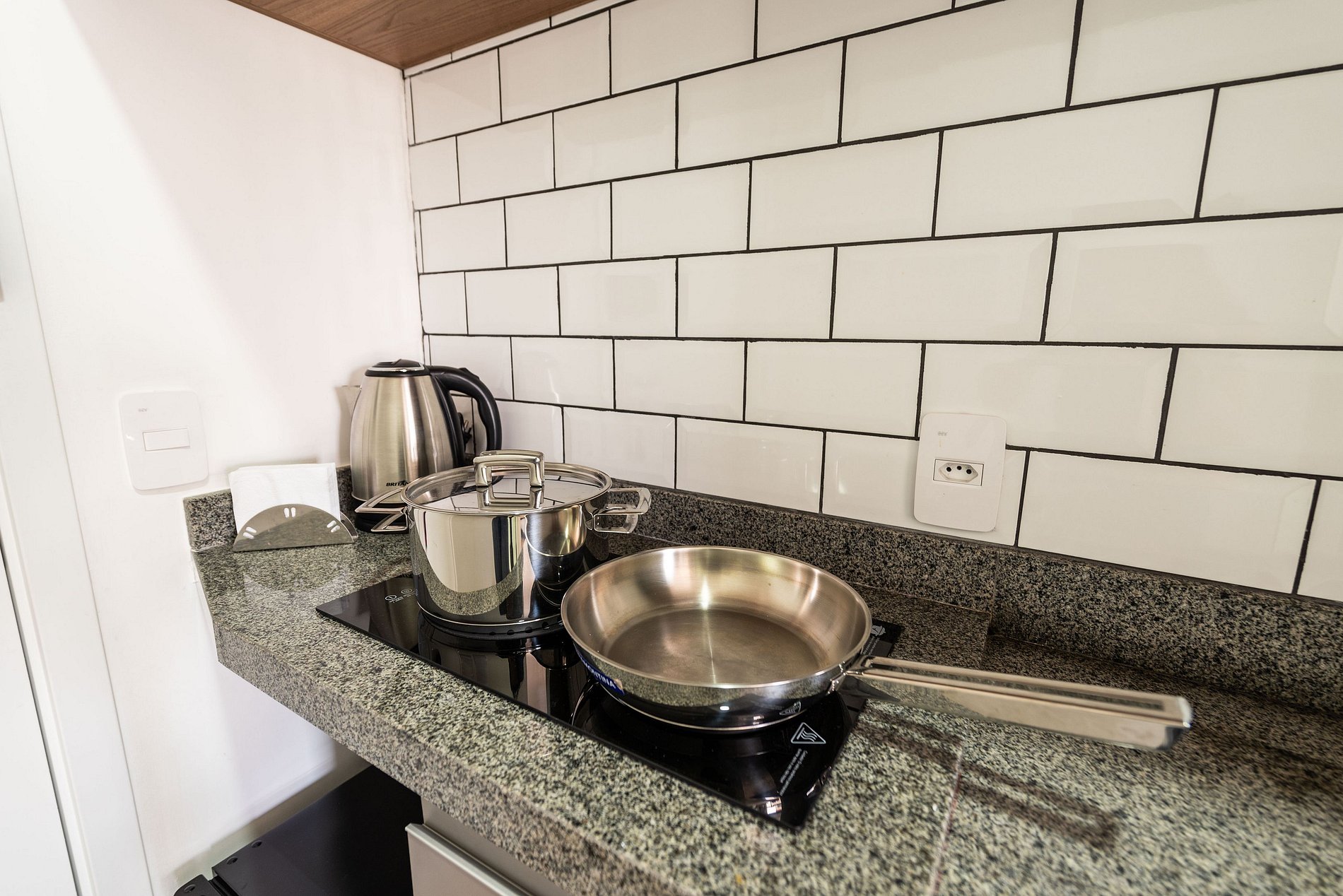 Este studio foi cuidadosamente decorado para unir estilo e praticidade. A paleta neutra e os acabamentos de alto padrão proporcionam um ambiente moderno e acolhedor. A cama de casal com enxoval de hotel garante noites relaxantes. A cozinha é compacta, mas completa, com utensílios, cooktop, chaleira elétrica, micro-ondas e frigobar. Para momentos de descanso, há uma, smart TV e uma charmosa bancada para refeições ou trabalho.