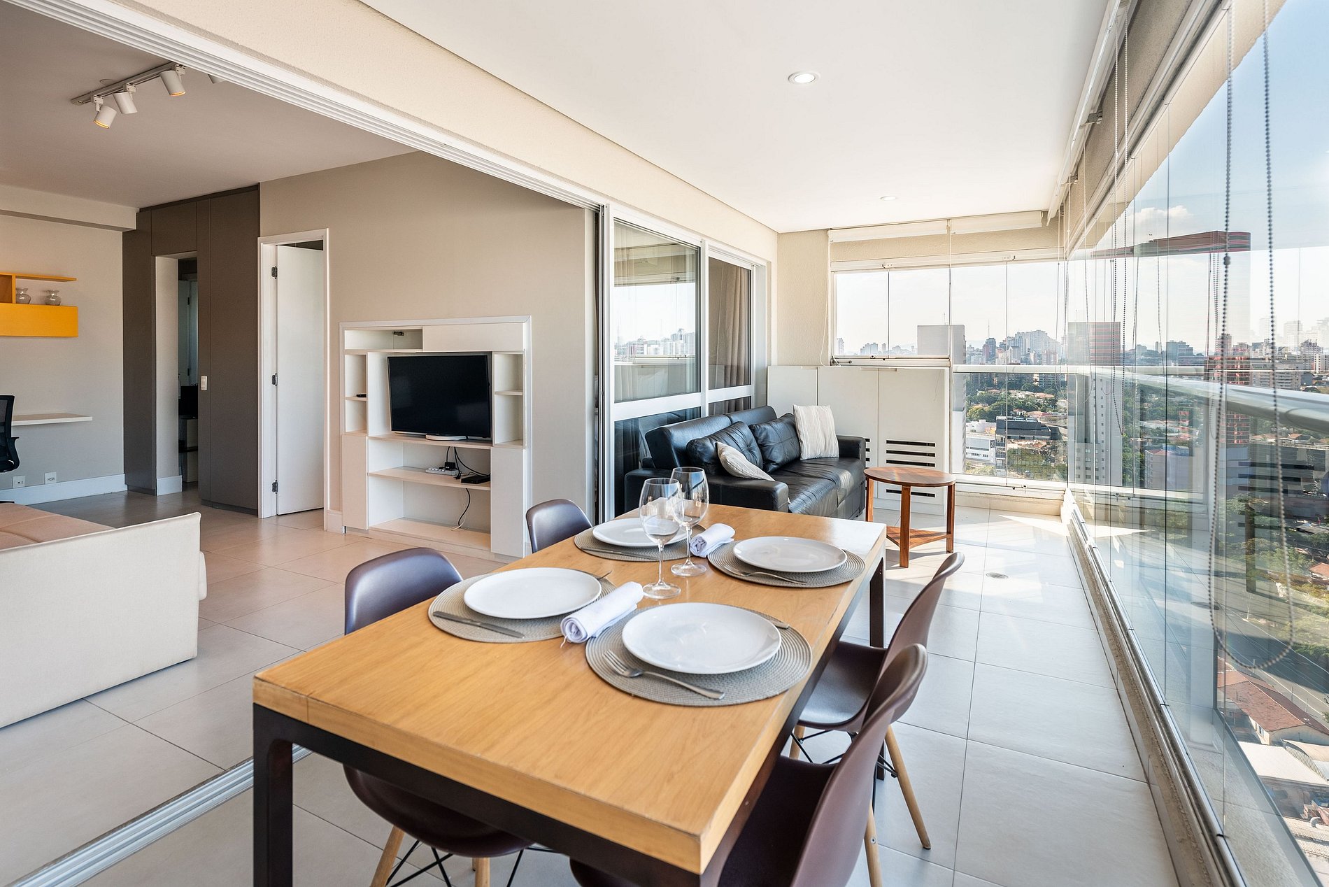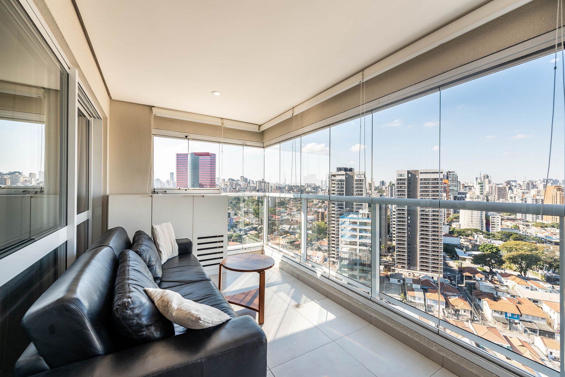 Moderno apartamento no 24º andar em Pinheiros, com varanda panorâmica, cozinha gourmet, home office e sofá‑cama. Prédio alto padrão com piscina climatizada, academia profissional, sauna & spa, estacionamento e segurança 24h. A poucos metros do metrô Faria Lima e do Shopping Eldorado, rodeado por excelentes restaurantes, bares animados e supermercados.