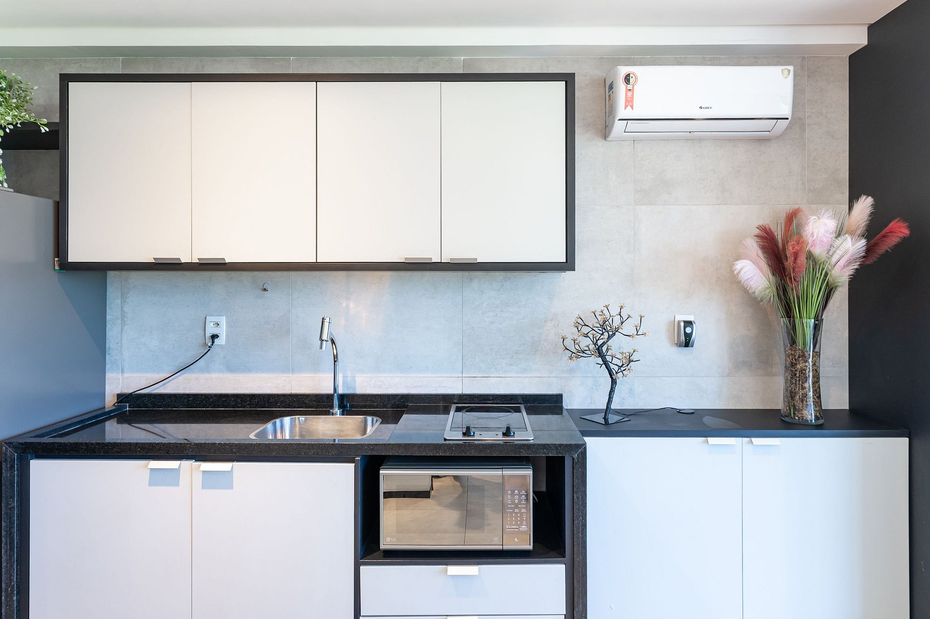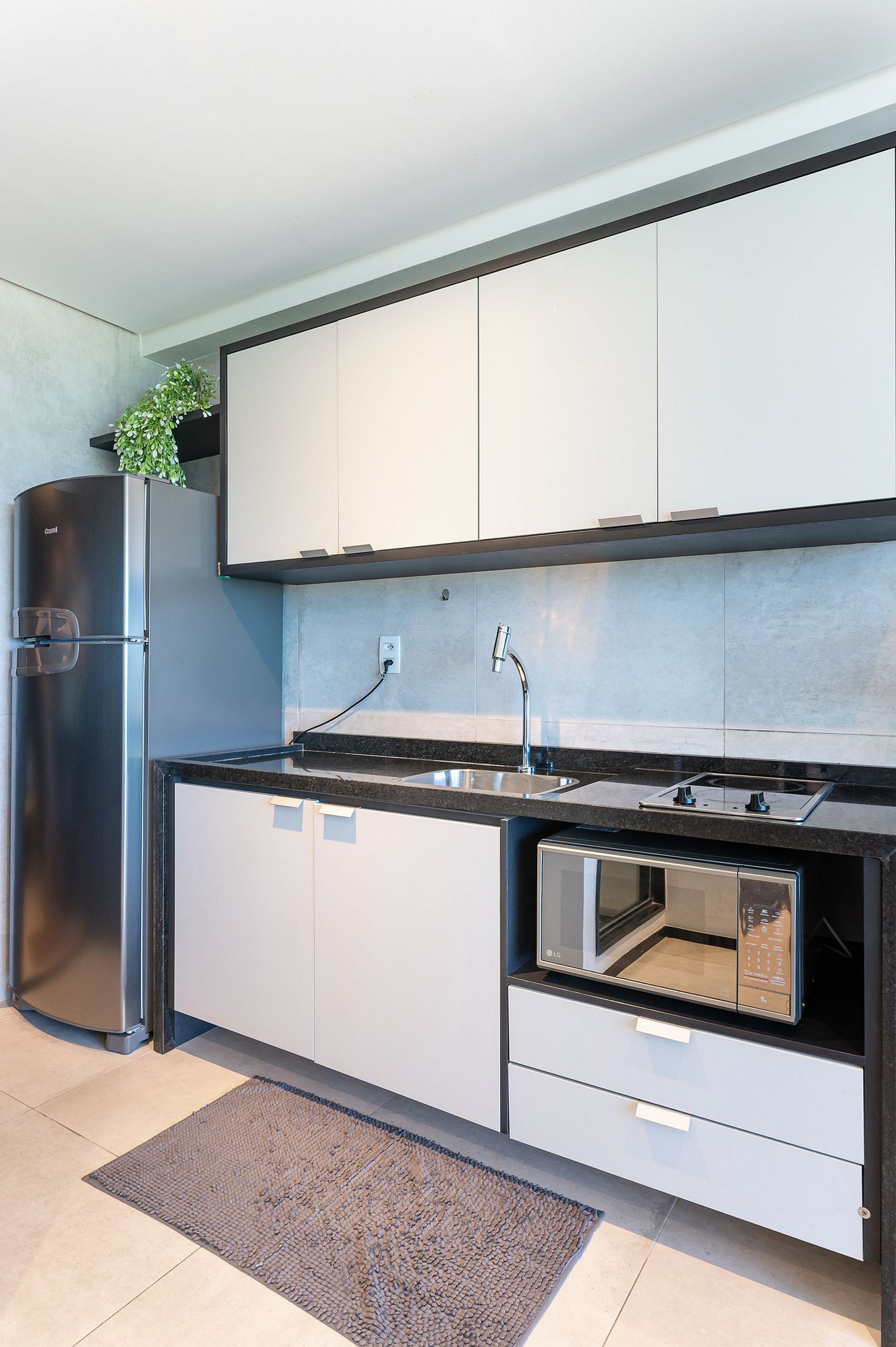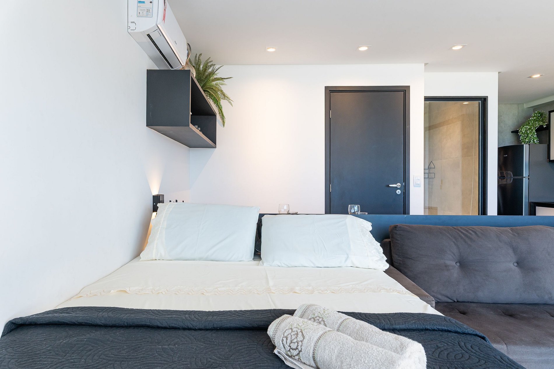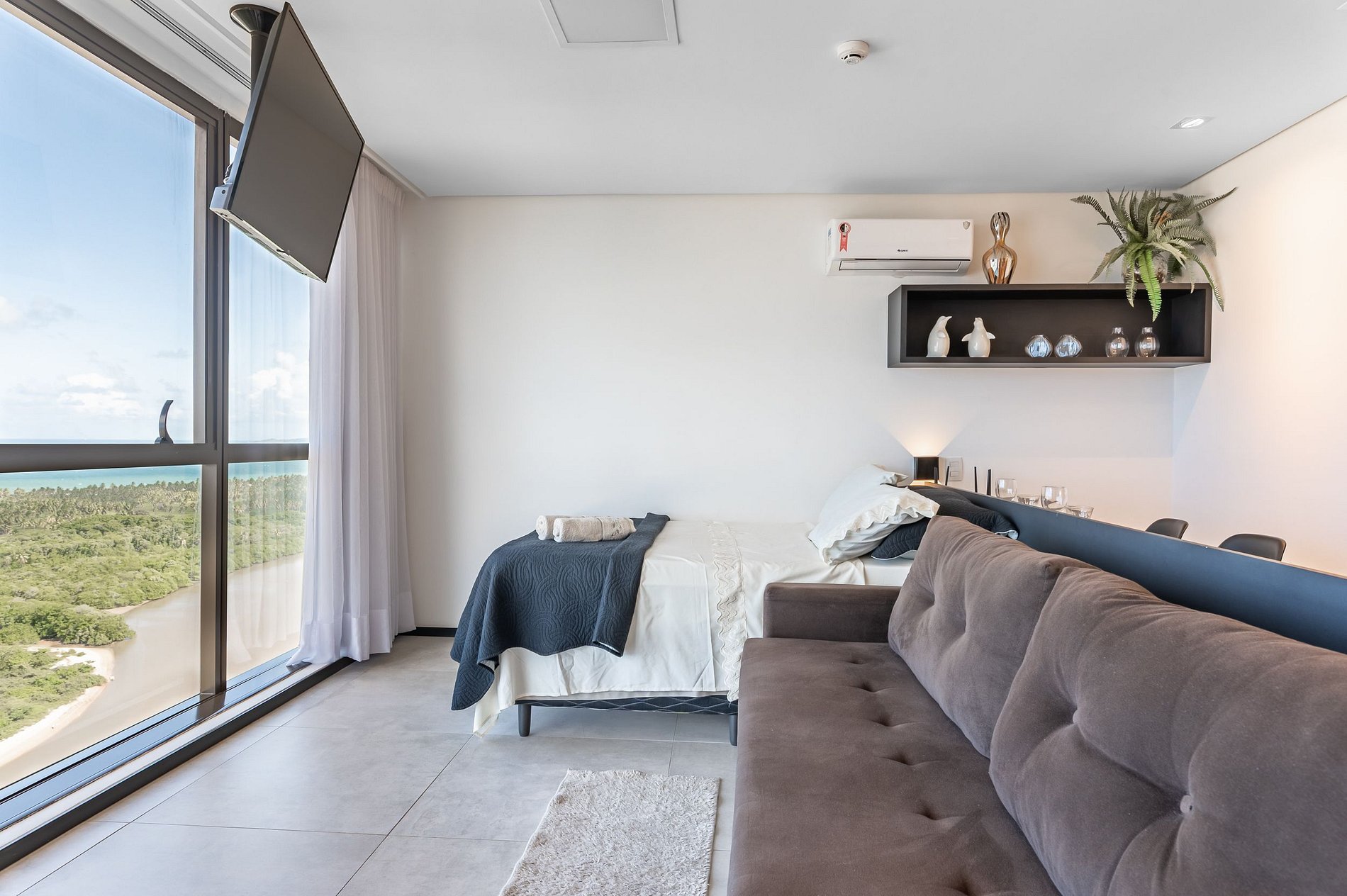 Nosso flat estilo loft oferece uma estadia confortável e sofisticada, com decoração moderna, ar-condicionado split e Smart TV. A cama queen proporciona noites de descanso com vista panorâmica para o mar e o rio. A cozinha é completa, equipada com cooktop, micro-ondas, geladeira, liquidificador e utensílios para preparar suas refeições. O prédio oferece piscina, sauna, sala de massagem, academia climatizada e lavanderia. Portaria 24h e estacionamento coberto gratuito completam a experiência.